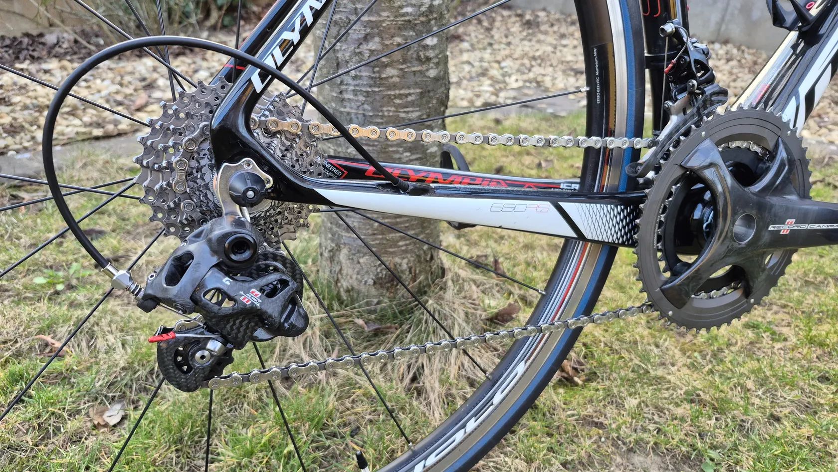 Specifikace: -karbonový rám Olympia, vel. S, UD Carbon Monocoque Toray T700 -mechanická karbonová sada Campagnolo Record 11rychl., převody 11-28/50-34 + navíc přidám převodníky 53-39, kliky 172.5mm (karbonové kliky, šaltr, páky,...) -zapletená kola Campagnolo Khamsin -kokpit Easton, karbonová sedlovka Ritchey WCS -sedlo Prologo -vel. S = Seat Tube 510mm, Top Tube 538mm