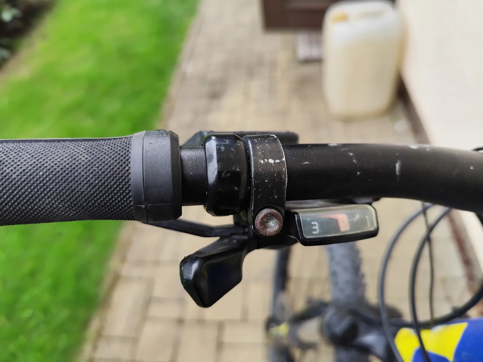 Stav odpovídá běžnému používání: oděrky, drobná rez na šroubech, chybějící plastová krytka řazení (funkčně většinou nevadí)