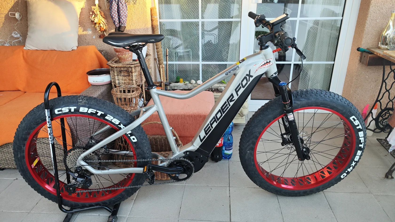 Prodám zachovalý Fatbike Leader Fox Brasa, vel. L, zakoupeno 10.1.2022, najeto 1119 km, motor Panasonic GX Ultimate o výkonu 250 W a točivým momentem 95 Nm, baterie 720Wh(nová v rámci reklamace 10.3.2024), v roce 2024 výměna vidlice za Rockshox Bluto, set zapletených kol XT v červeném eloxu a sady Shimano Deore 11z a to řazení, přehazovačka, kazeta a řetěz - po výměně komponentů najeto cca 500km. Kolo je po servisu, promazané, seřízené a připravené na sezónu. Kolo bylo jako druhé elektrokolo (celoodpružené enduro) minimálně používáno - viz nájezd. Více a stav viz foto
