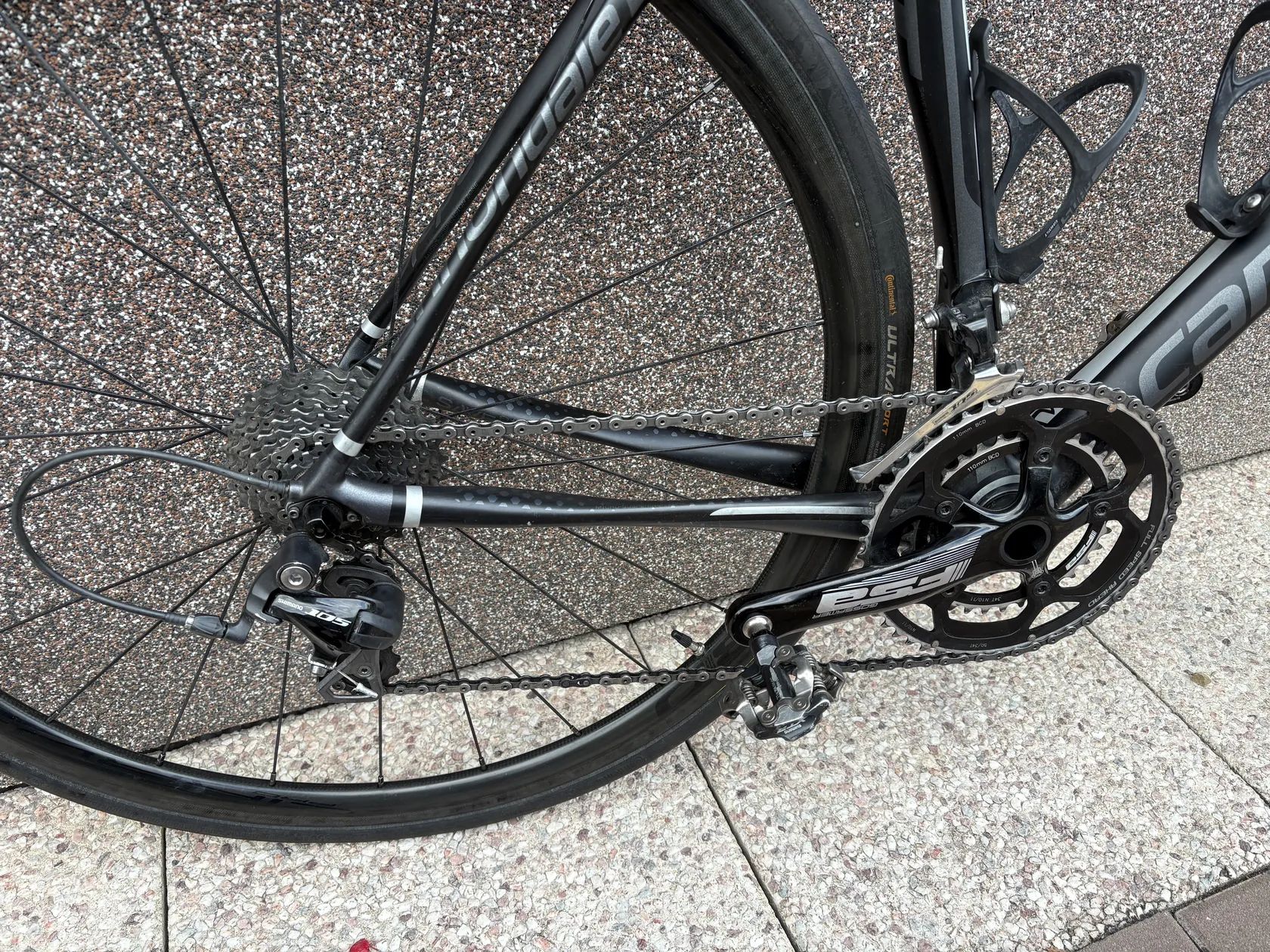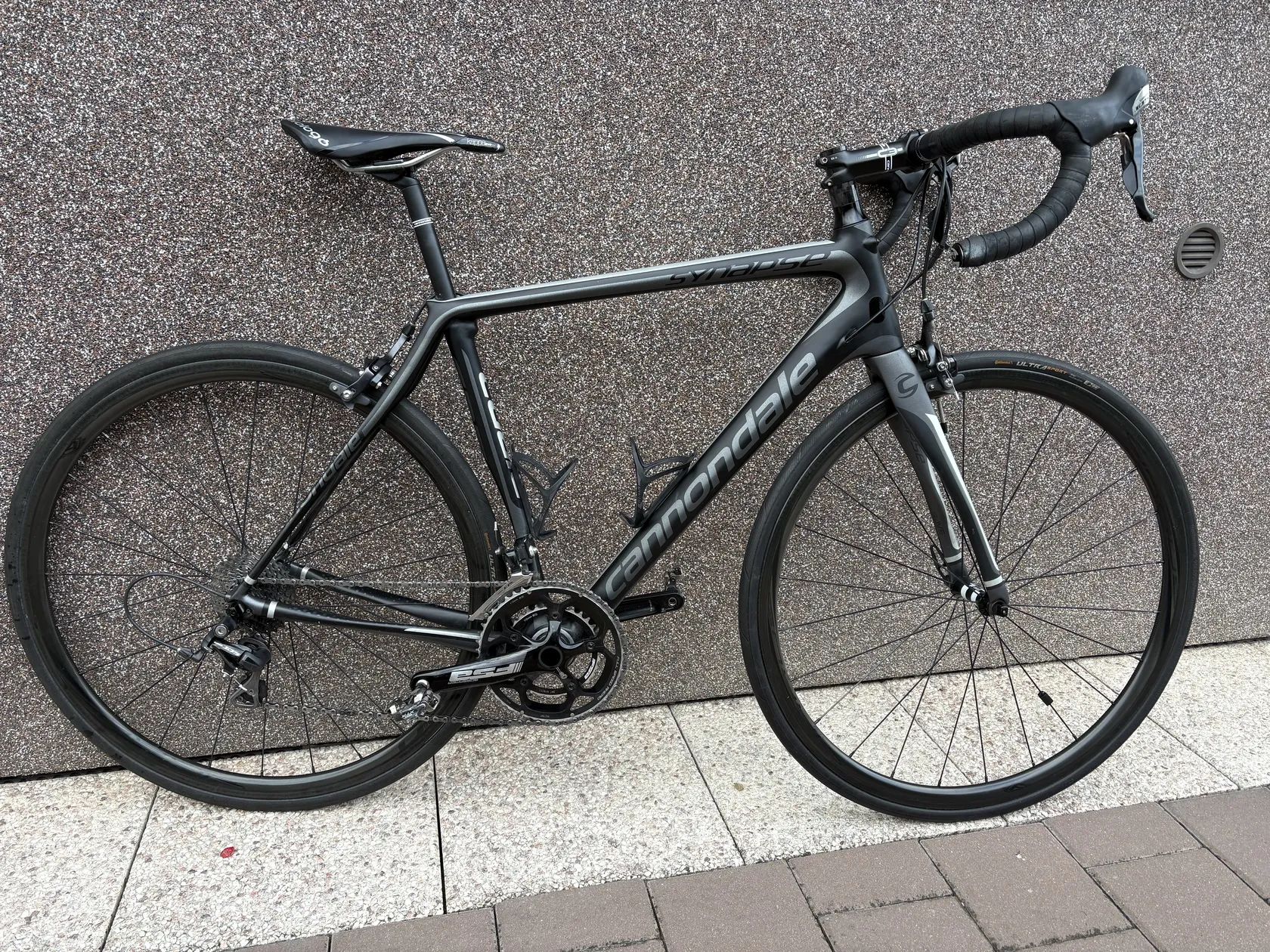 Prodám silniční karbonové kolo Cannondale Synapse. Velikost 54(170cm-180cm). Karbonový rám, karbonová kola, pneumatiky Continental Ultra Sport. Přehazovačka, kliky,brzdy Shimano 105. Náboje DT Swiss 350. Kolo má lehké oděrky, jinak je v pěkném stavu. Ke kolu přidám původní kola.