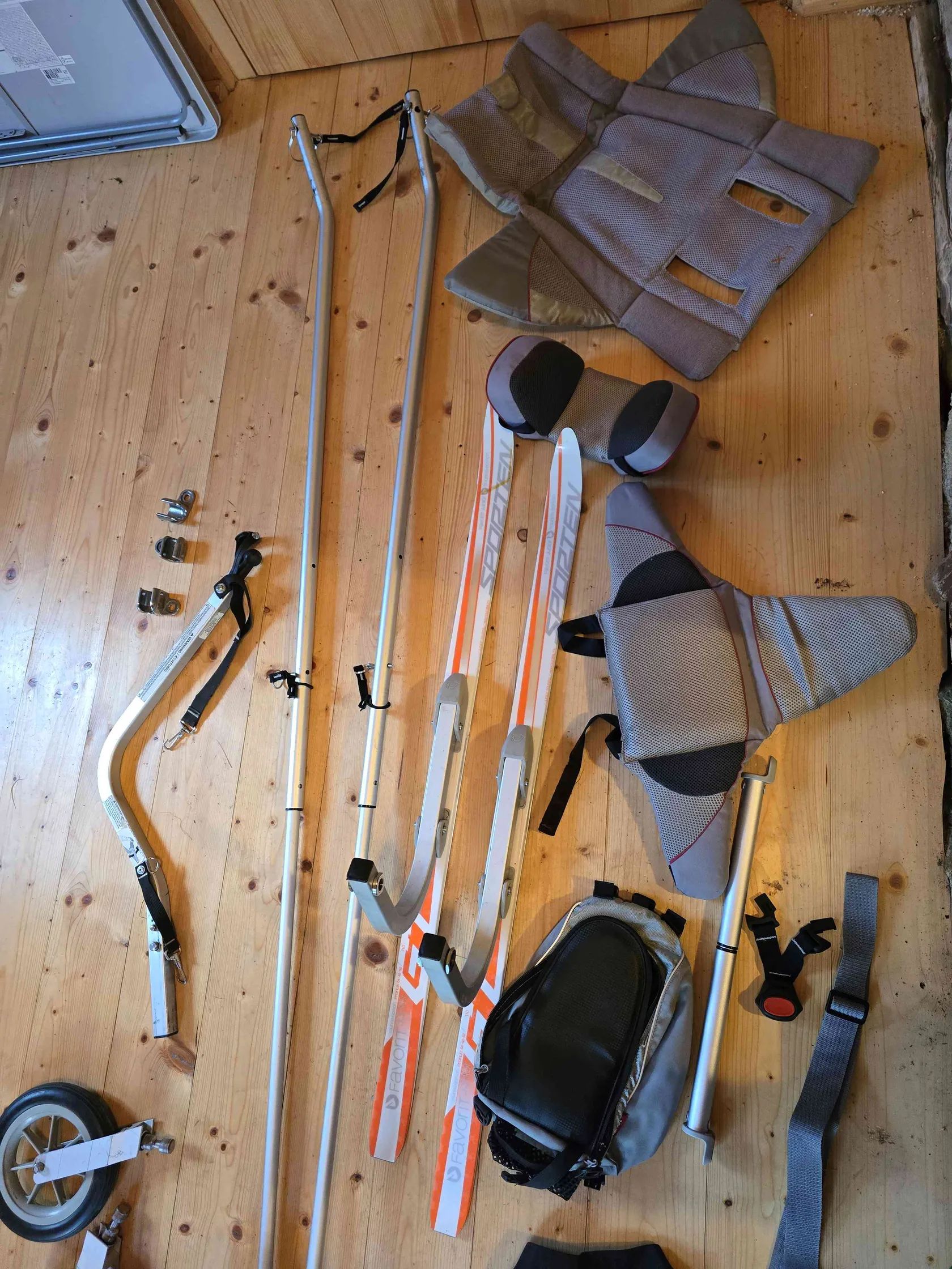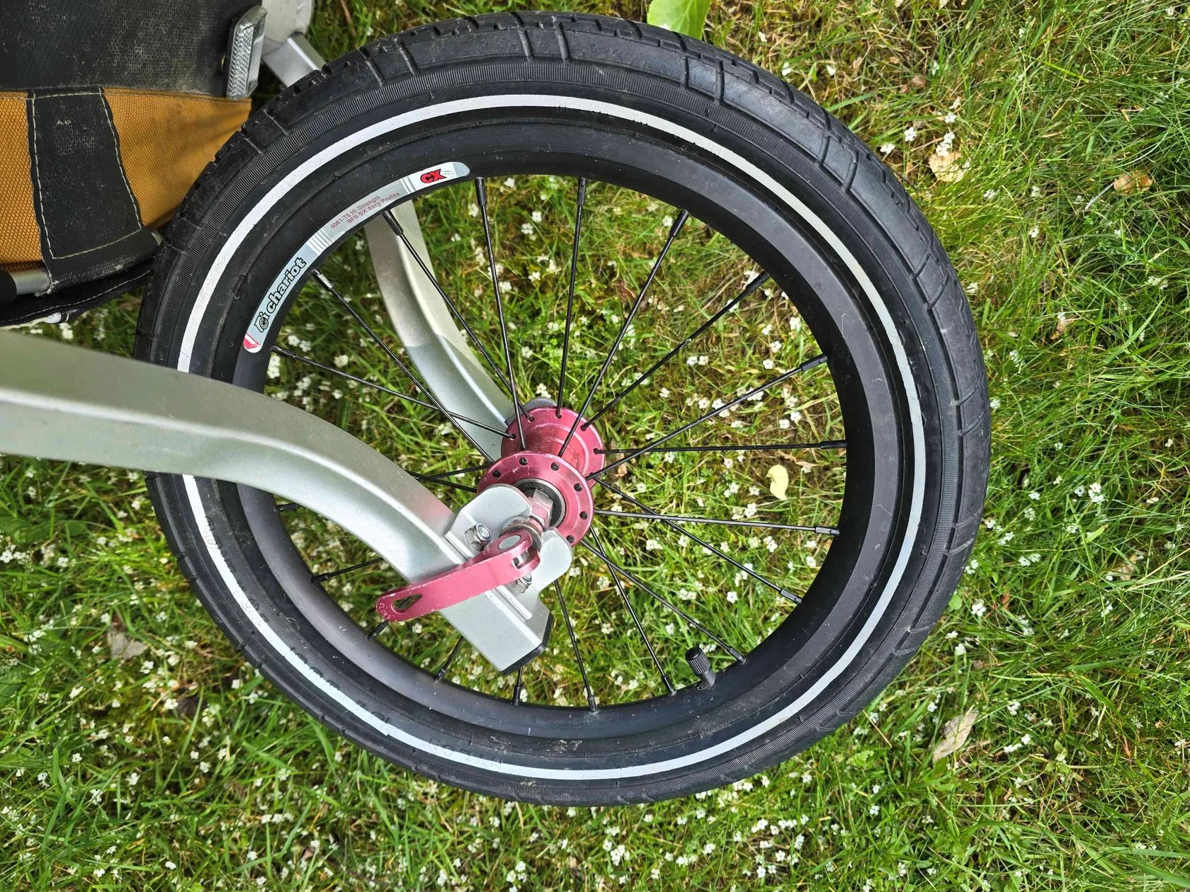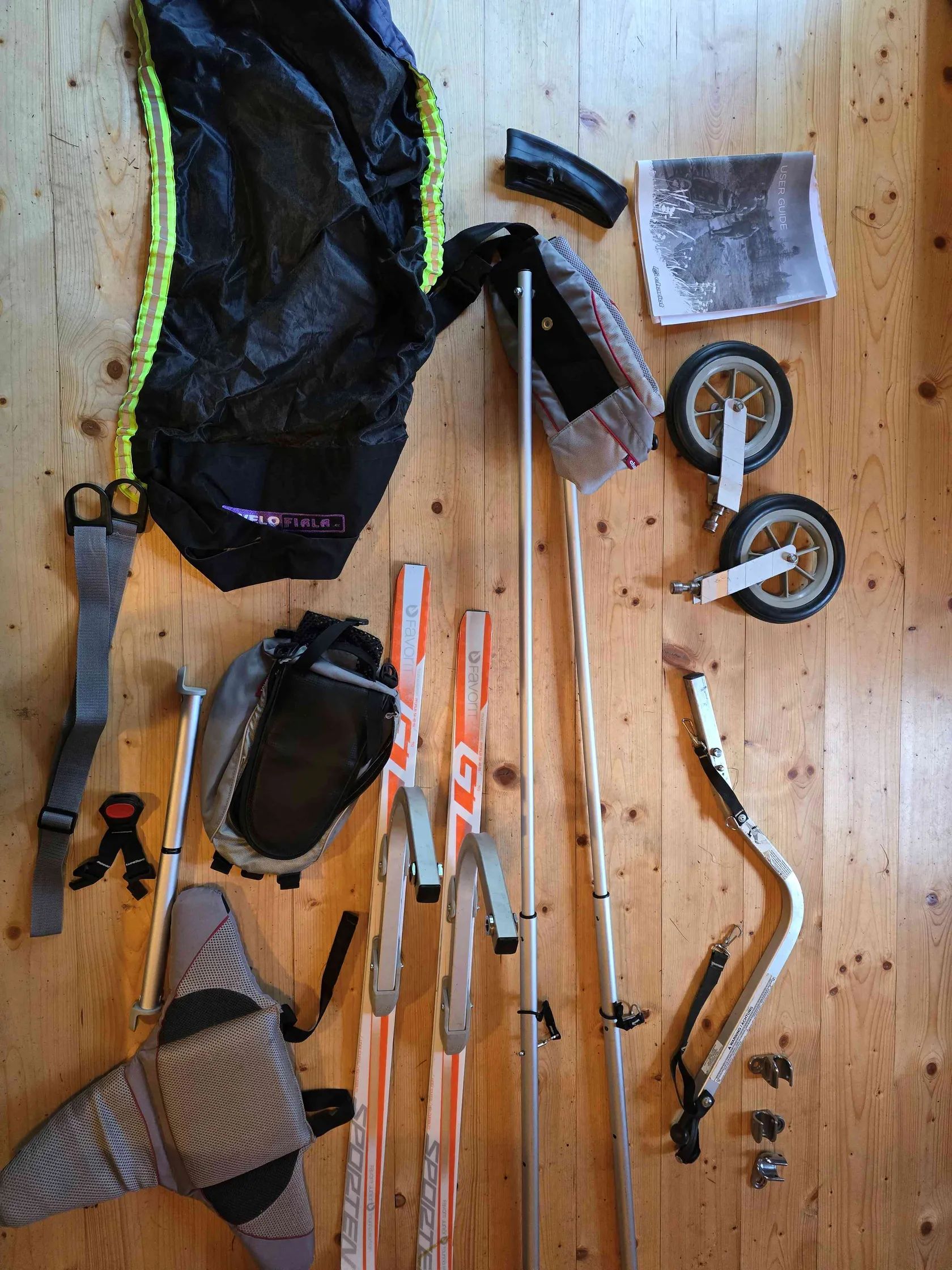 Všestranný sportovní kočárek a vozík Thule Chariot CX 1 ve velmi zachovalém stavu s kompletním vybavením na kolo, běh, lyžování i pohyb po městě a v MHD. Jednomístná verze ve žluto-bílo-šedé kombinaci s bubnovými brzdami, nastavitelné odpružení, ergonomické madlo s brzdovou páčkou přímo na madle s možností aretace jednoduchým stisknutím tlačítka. Velká kapsa na věci vzadu + další prostorné kapsy, případně lze využít i prostor pod sedačkou. Chytrý systém uchycení zrovna nevyužívaného vybavení umožňující pohodlnou výměnu velkého kola za „kočárková“, nandání/sundání tažné tyče na kolo atd. Prodáváme pouze jako celý komplet zahrnující: cyklistický set (tažná tyč + spojka k upevnění na zadní kolo 3x – lze nainstalovat na 3 různá kola v rodině, není třeba pokaždé sundávat, stačí velmi snadno nasadit a jet), pro jízdu po asfaltu lze využít výstražný praporek na tyči, přidáme náhradní duše jogging set (pevné velké přední kolo + vidlice) – pro běh či chůzi ve městě i v terénu, inline bruslení městský/kočárkový set – malá otočná přední kolečka, popruh na přenášení lyžařský/zimní set (kvalitní běžky Sporten + tažný popruh s pohodlným bederním pásem s kapsou na láhev) + mnoho náhradních dílů Thule Baby Supporter (tzv. miminkovník – vložka pro nejmenší děti) – zavěšená postýlka s polstrovanými boky, kterou lze nastavit podle potřeby více do polohy v lehu či sedu, zajišťuje tlumení nárazů, lze doplnit opěrkou hlavy, ideální pro věk cca 6 až 18 měsíců podle velikosti potomka přídavný pylový a prachový filtr Velo Fiala batůžek pro dítě, který lze k vozíku připnout jako doplňkové zavazadlo Vozík je ve velmi dobrém stavu, vše funkční a kompletní, včetně originál návodu k použití. Plastové kryty proti dešti neporušené, všechny zipy v pořádku, pár drobných kosmetických vad odpovídajících aktivnímu užívání – drobné oděrky, ošoupaný spodek, natržená a zašitá boční síťka proti hmyzu – viz foto. K vidění na Praze 4, nutné osobní převzetí, platba v hotovosti při převzetí.