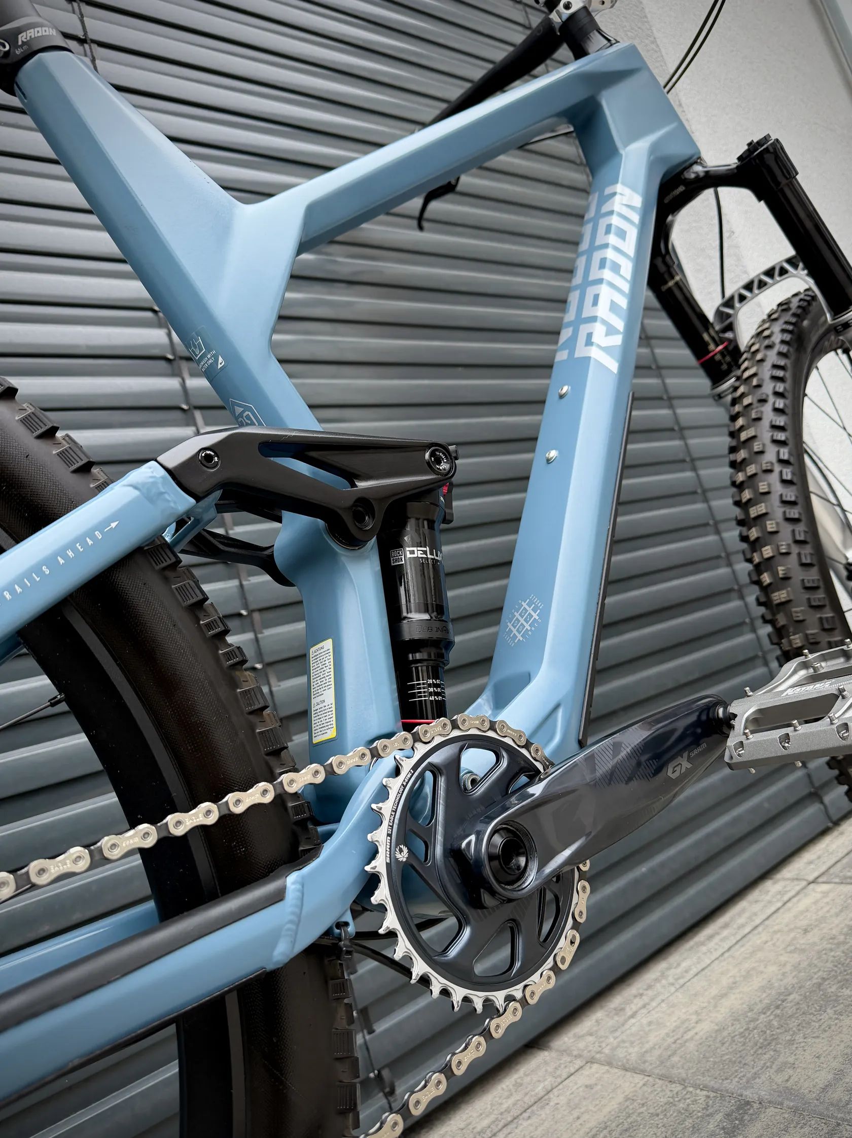 Specifikace: Rám je z karbonu. Zadní stavba je z hliníku. Zdvih 120 mm. Vedení kabelů vnitřkem rámu. Ochranné bumpery rámu. Tlumič; RockShox Deluxe Select+, DebonAir spring, trunnion mount, 185mm x 47.5mm, uzamykatelný, zdvih 120 mm Vidlice: RockShox Pike Ultimate, Charger 2.1 RC2 damper zdvih 130 mm Brzdy: Magura čtyŕpístky/dvoupístky MT Trail Custom, kotouče Magura Storm HC 180mm Pohon: Přehazovačka SRAM GX Eagle, 12-speed , řazení Sram GX, kazeta SRAM GX Eagle XG-1275, 10-52 T, kliky SRAM GX Eagle DUB, 175mm, převodník 32T Kola: DT Swiss M1700 Spline, 30mm, Tubeless MucOff, Boost. Plášťe Schwalbe Nobby Nic, Addix Performance, TLE, Kevlar, 29" x 2.35", Tubeless MucOff Kokpit: Představec Race Face Turbine R, 35mm. Řídítka Race Face Turbine R, 35mm Ø, 780mm. Gripy SDG Thrice Teleskopická sedlovka: SDG Tellis 150 mm zdvih Sedlo: SDG Bel Air V3 Pedály: Katana