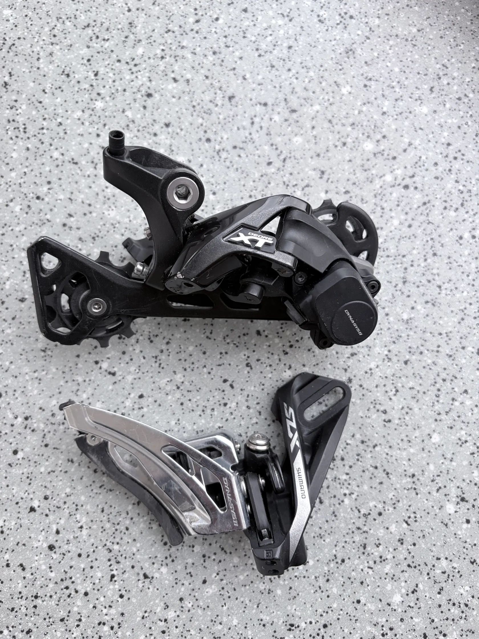 Prodám přesmykač Shimano SLX a přehazovačku Shimano XT ze sady 2x11, kdyby někomu posloužila. Funkční, drobné oděrky.