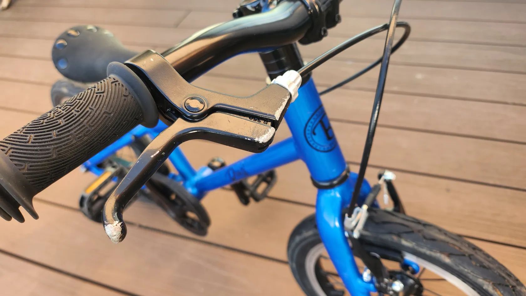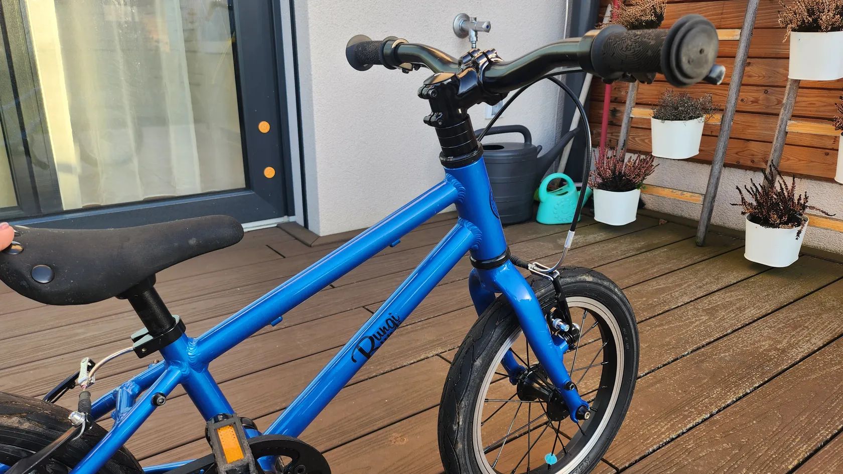 Stav použité, po 2 dětech, běžné oděrky – vhodné pro rodiče hledající lehké kvalitní kolo bez důrazu na kosmetický stav