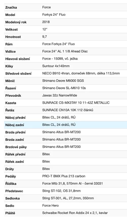 Dobrý den, mám zájem o Vámi nabízený inzerát Force Forkys 24" (stavba, váha 9,7 kg)