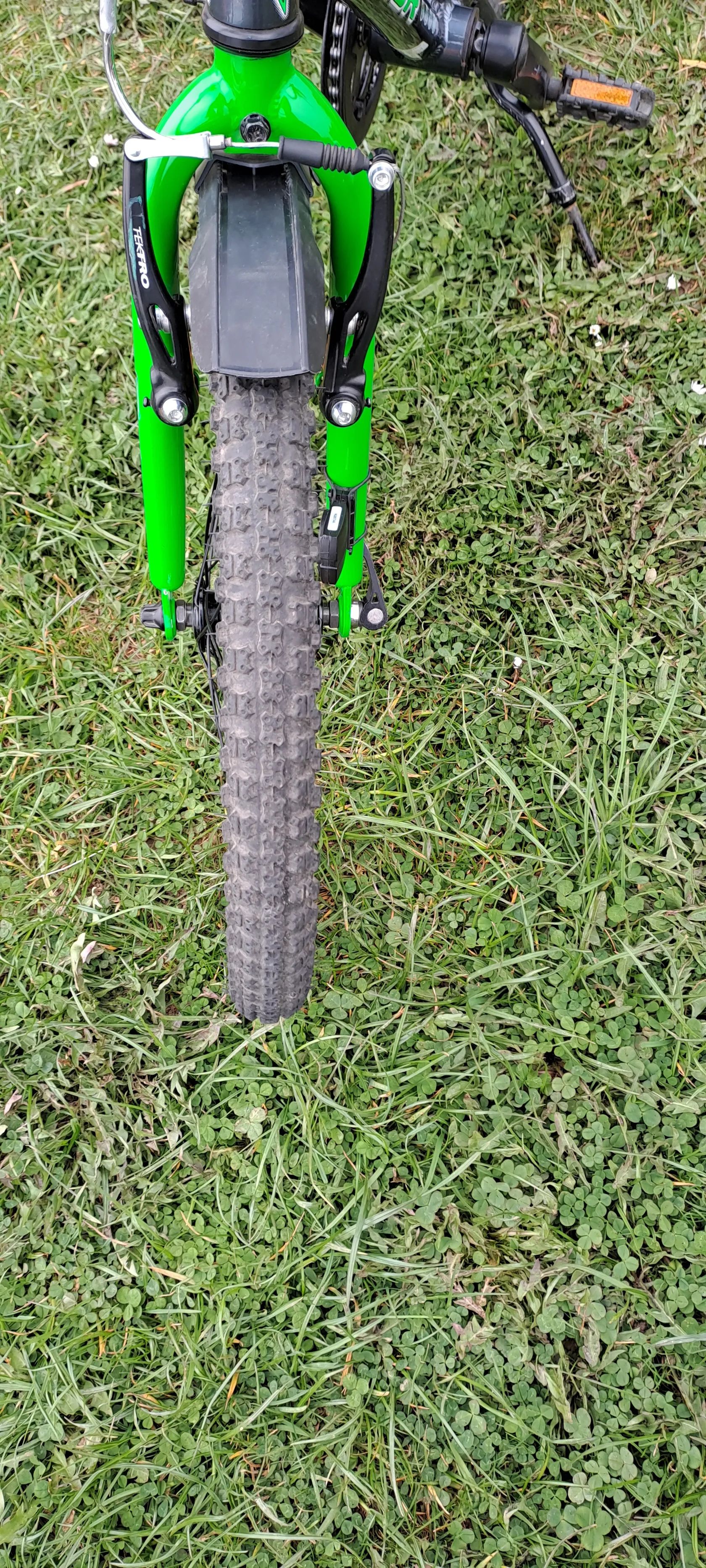 V-brzdy Tektro – běžné, dobře funkční dětské brzdy.