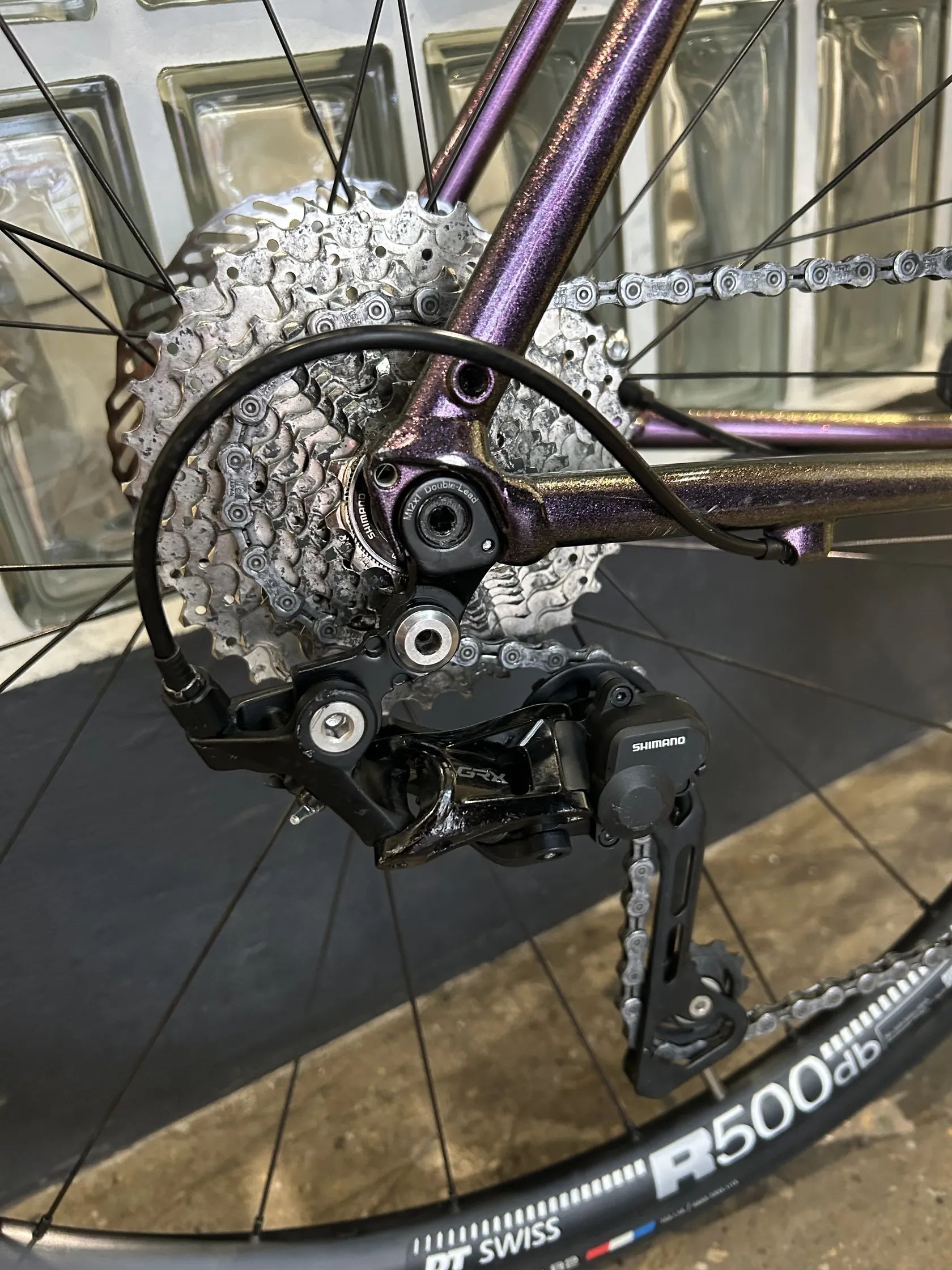 hliníkový rám + karbonová vidlice sada Shimano GRX 2×10 hydraulické kotoučové brzdy sedlovka Fizik nájezd cca 5 200 km z 99 % ježděno po silnici a cyklostezkách v zimě používané pouze na trenažeru