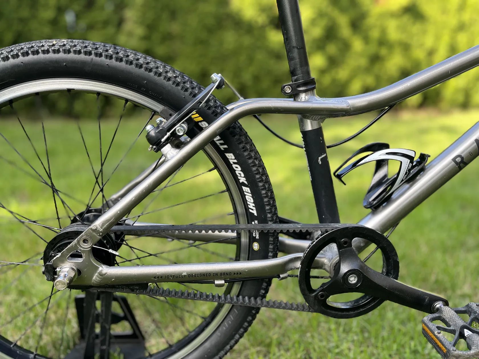 Hmotnost cca 7,8 kg – patří k lehčím dětským kolům této velikosti
