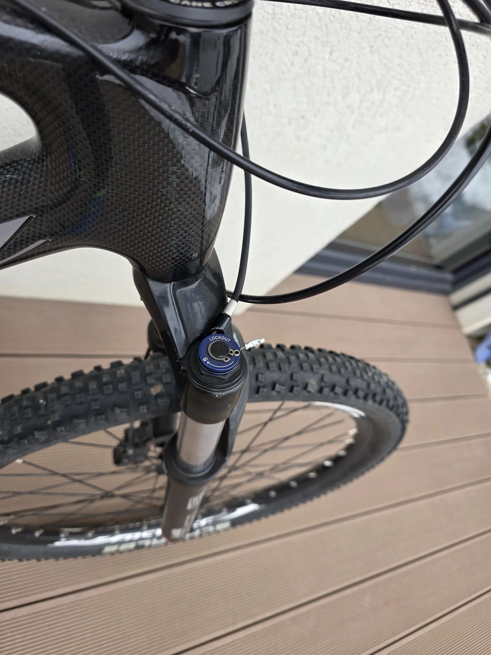 Vzduchová vidlice s uzamykáním – možnost přizpůsobení hmotnosti jezdce, efektivnější šlapání do kopce