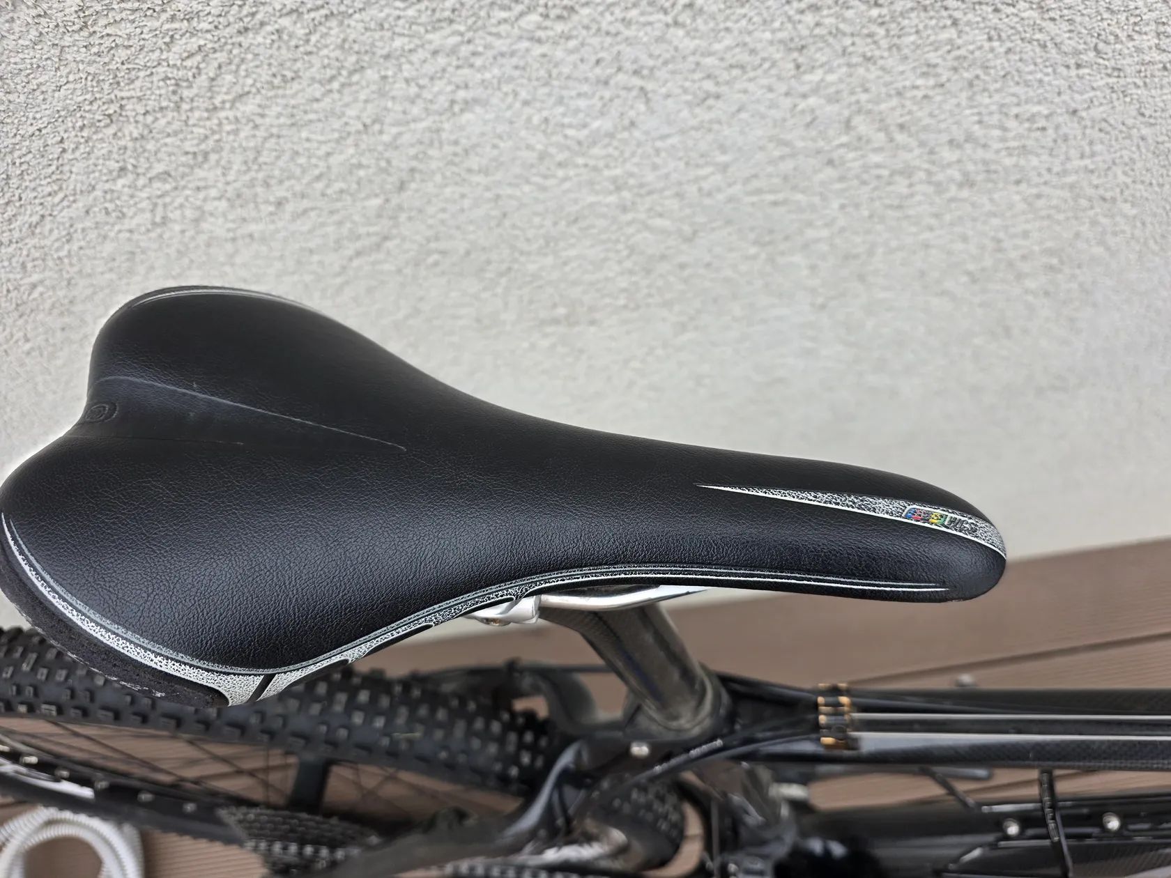Inzerát uvádí nastavení sedla do výšky cca 160 cm – aktuální konfigurace je spíš pro nižší postavu
