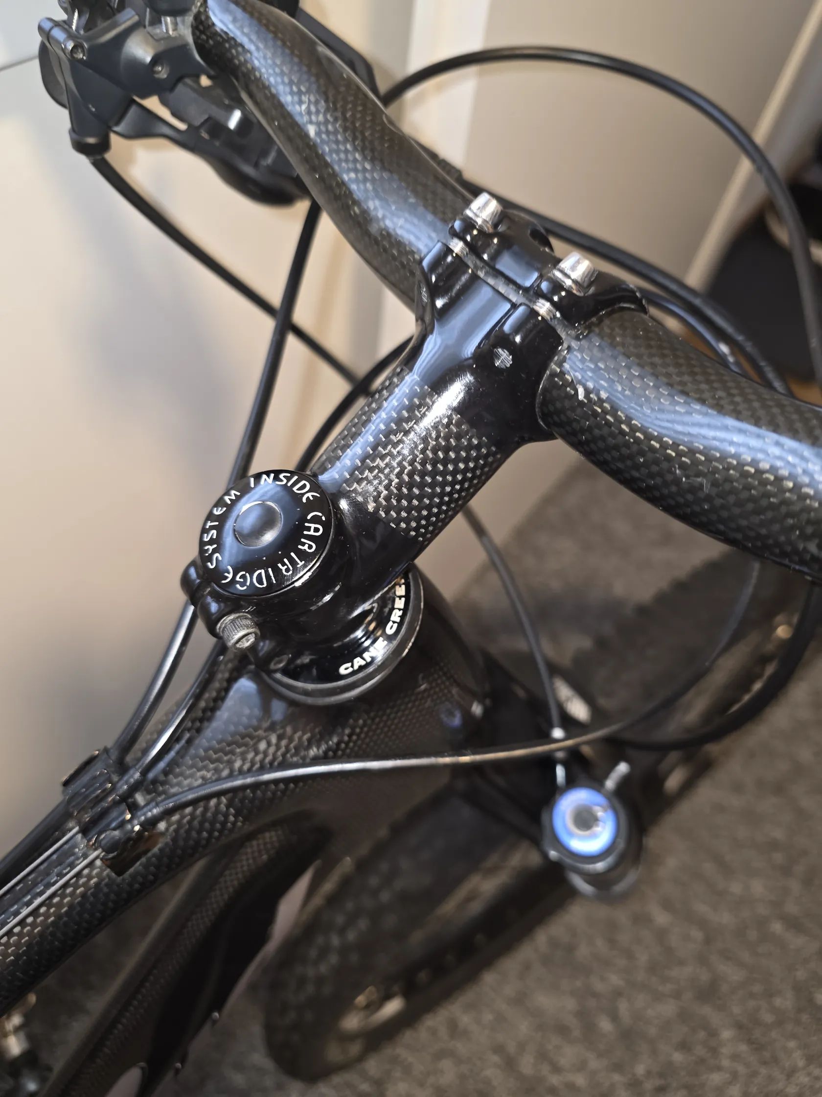 Rám z karbonu + karbonová řídítka, představec, sedlovka – důraz na nízkou hmotnost