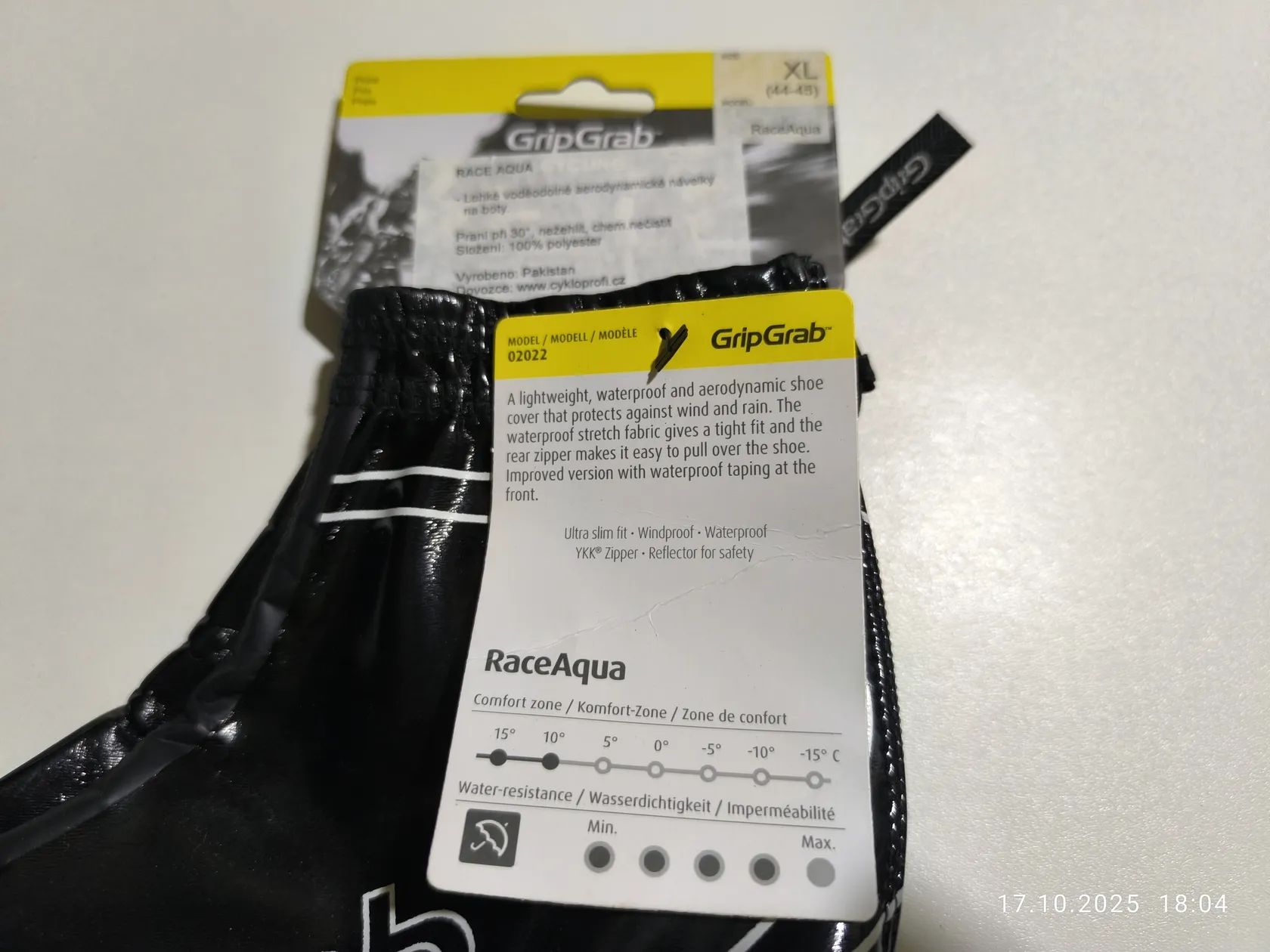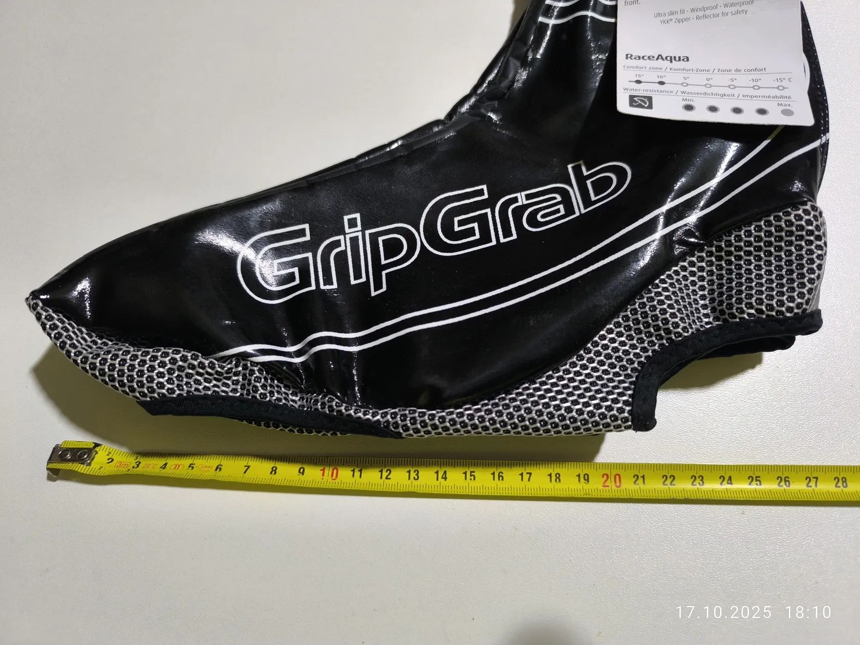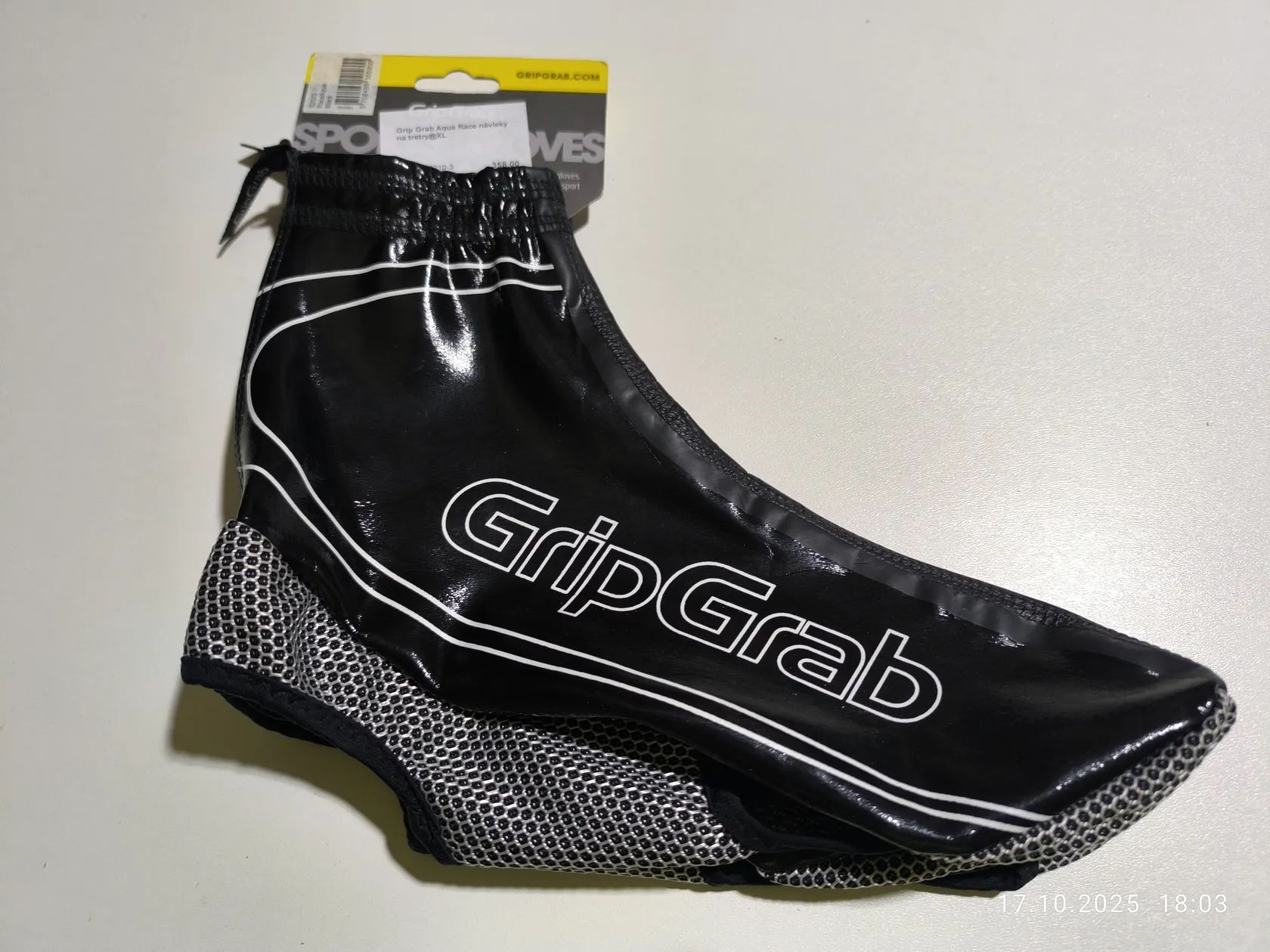 Nabízím k prodeji nové návleky Grip Grab - AQUA RACE na tretry do deště velikost XL, rozměr viz přiložené foto. Jsou lehké, vodě a větru odolné, natahovací tkanina zajišťuje těsné uchycení k botě. cena 150,-