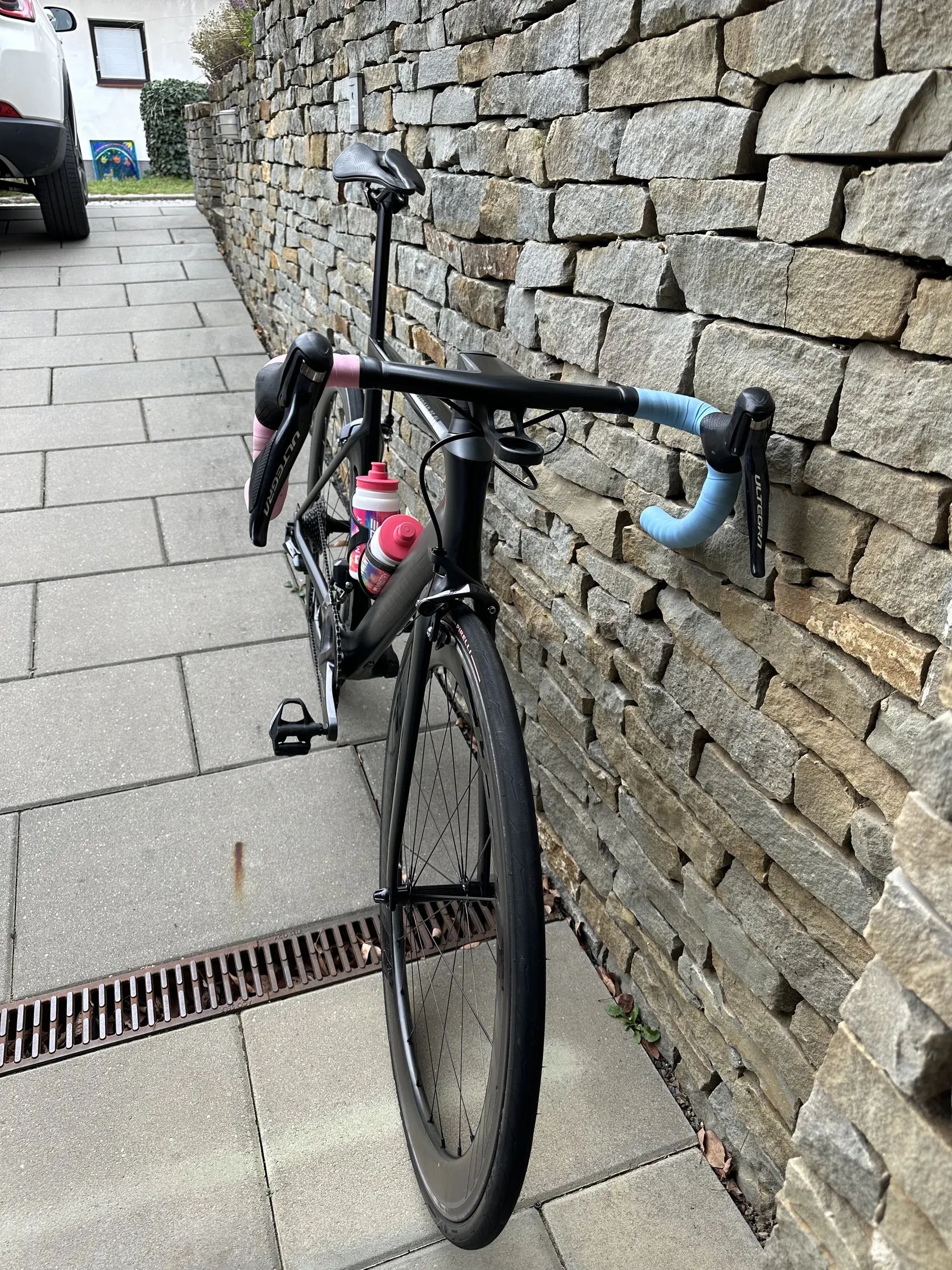 Elektronická sada Ultegra Di2, 2x11, zadní kazeta letos nová 11-30, převodník 34-50, řetěz Durace letos taky nový. Karbonový origo kokpit 410/100 Sedlovka karbon Kola karbon 55mm Sedlo Selle italia Pneu Pirelli P zero racing 26mm, dušové Váha kola, tak jak je cca 7,5 kg.