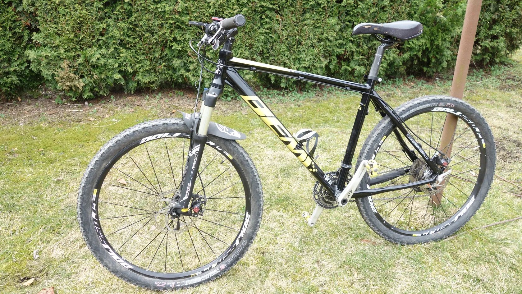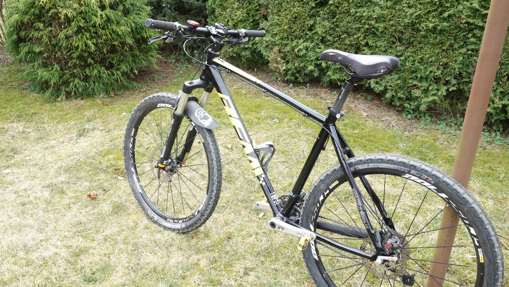 úplně nový rám, kola Mavic crossride 27.5, vidlice Suntour Raindon, brzdy Avid BB7, řazení deore 3X9, computer Sigma 1200, pedály SPD. Sedlo je trochu potrhané, ale to ještě vyměním. Váhově dcl příjemné