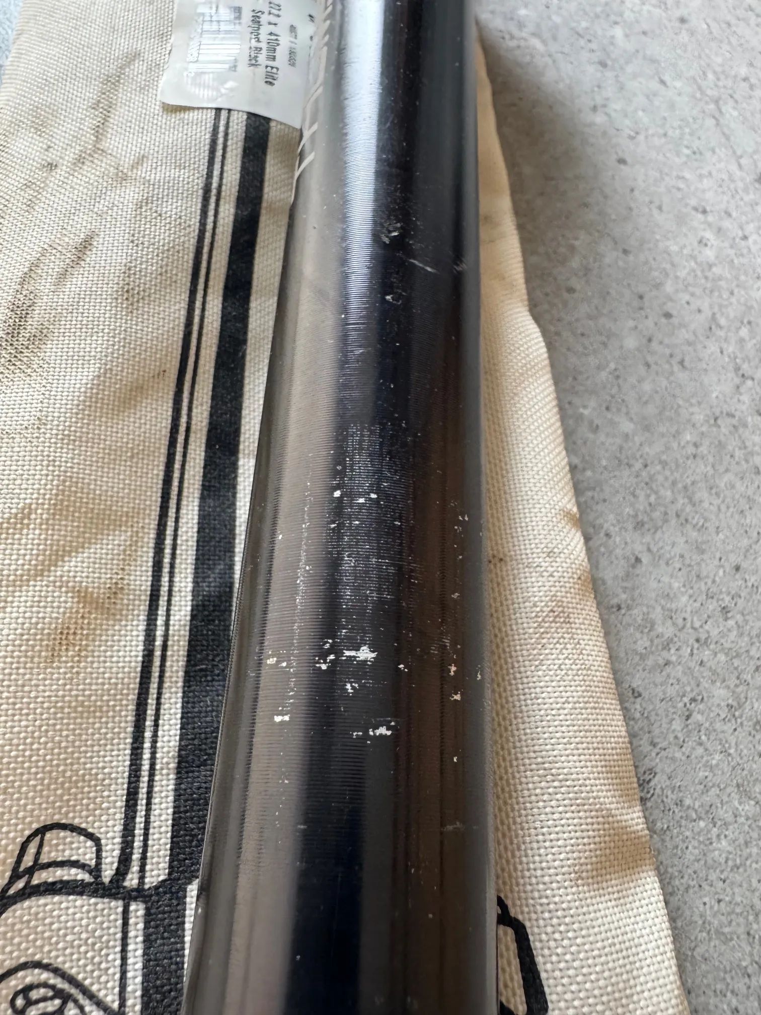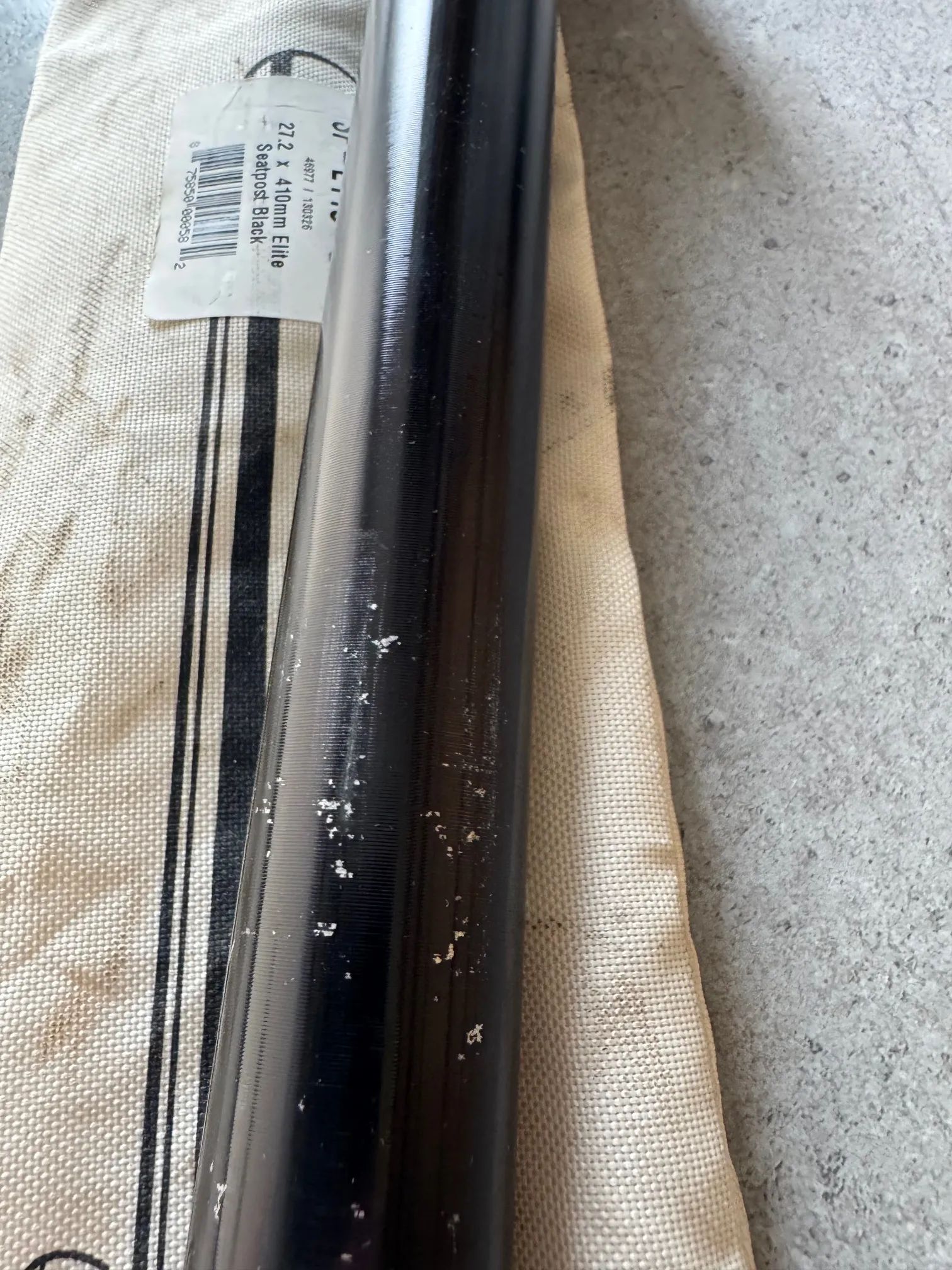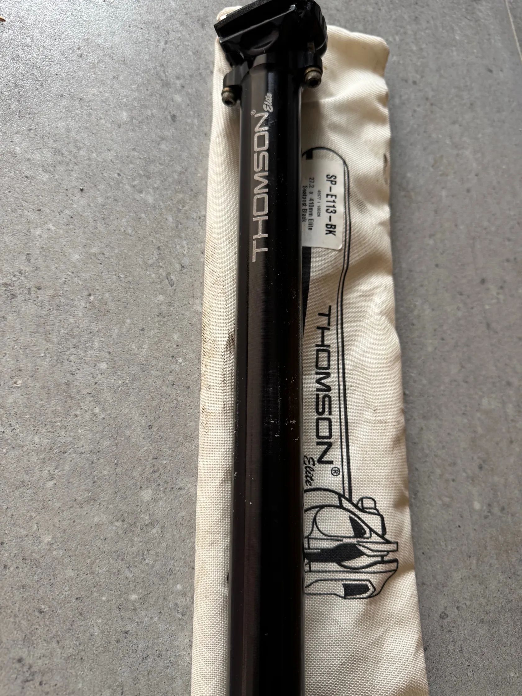 Sedlovka Thomson Elite 31.6/410, rovná. Ve spodní části pod ryskou odřená, nad ryskou taky nějaké odřeniny viz foto.