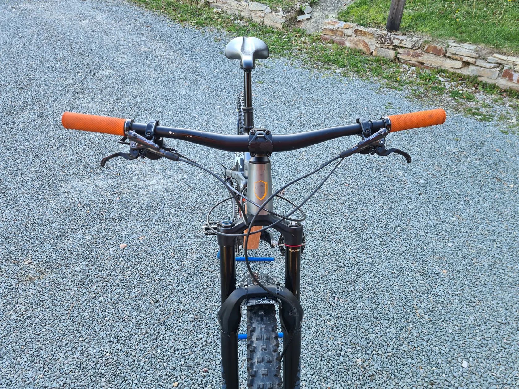Fluid Fs 2 ve specifikaci A2. O kolo bylo vždy pěkně postaráno, pravidelný servis. Kolo má příjemnou geometrii spíše trailovější, ale díky kvalitní vidlici RS Lyrik a tlumiči RS Monarch plus si poradí i s poctivím Endurem. Kolo je osazeno XT brzdy a hazka. Řazení a kazeta SLX. Originál sedlovku Tranz-x 170mm jsem nahradil One-up 200mm. Řetěz a destičky téměř nové. Kolo jen nasednout a jezdit. Já si bohužel po zranění dávám pauzu.