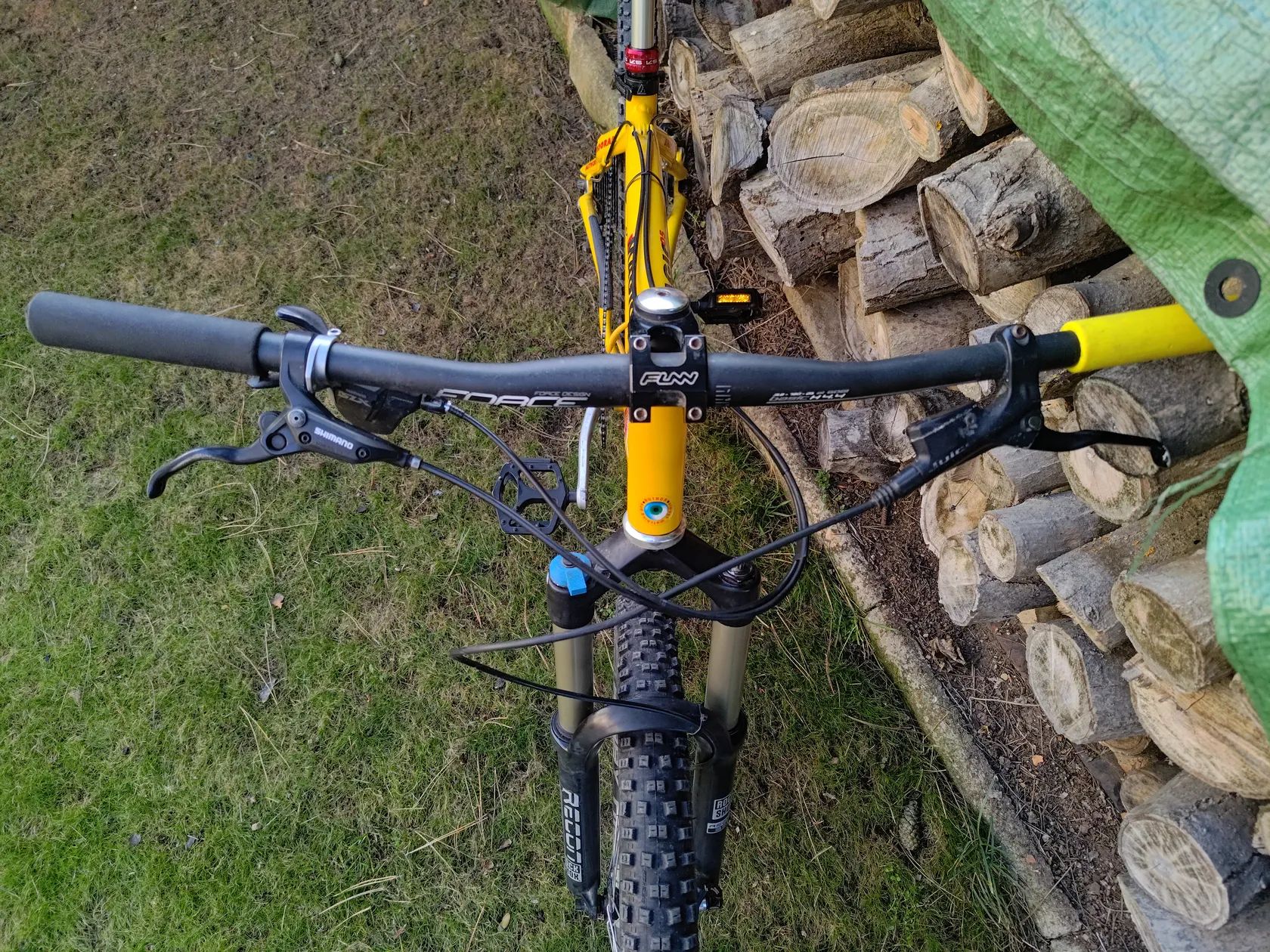 Teleskopická sedlovka: KS i900 125mm Řazení, Přehazovačka, Kazeta: Shimano SLX 1x11 M7000 11-46z Převodník: Raceface 36z Ráfky: Stan's NoTubes ZTR Crest 26", vpředu bezdušový tmel, vzadu duše Pláště: Schwalbe Nobby Nic 2,35" a Specialized The Captain 2" Brzda přední: Avid Juicy Three, 180mm kotouč Brzda zadní: páka Shimano BL-M396, třmen Magura MT4, 160mm kotouč Představec: Funn Funnduro 60mm, Řídítka: 720mm **Hliníkový úchyt na zadní kotoučovou brzdu je dodělávaný, profesionálně navařený, nepůvodní barva viz foto. Nepojme větší kotouč než 160mm. Úchyt na ráfkovou brzdu stále k dispozici.