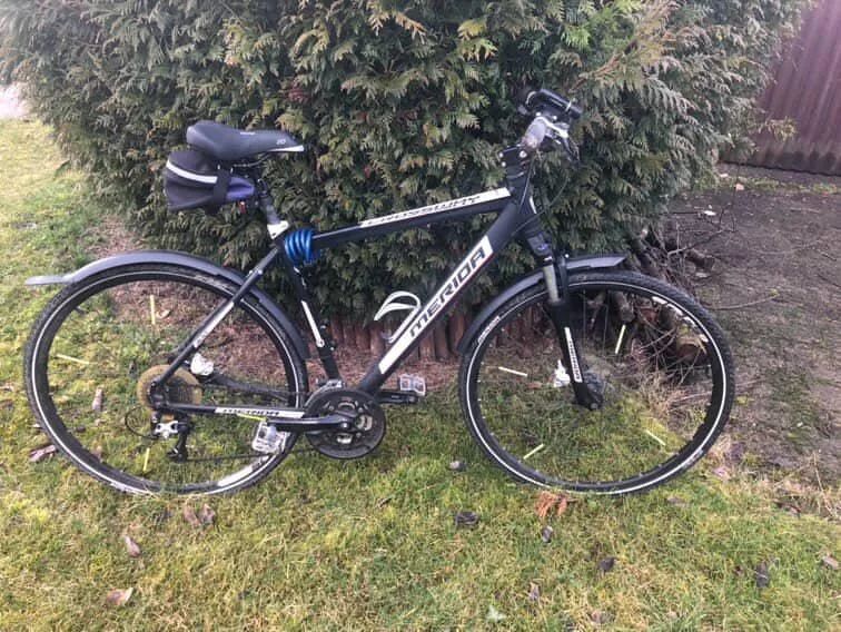 Prodám krosové kolo Merida Crossway, cca 2 roky používané. Kolo je pravidelně servisované, udržované a plně funkční. Vše bez problémů – brzdy, řazení i odpružená vidlice fungují jak mají. Lehký hliníkový rám, kotoučové brzdy, pohodlné sedlo. Ideální na cyklostezky, silnici i lehčí terén. Součástí jsou blatníky, držák na láhev, světlo a zámek. Kolo je bez nutnosti dalších investic – stačí sednout a jezdit. Důvod prodeje: nevyužité.