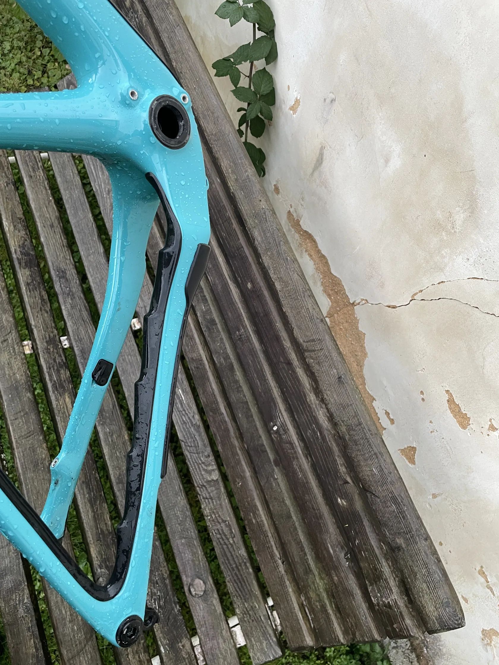 K rámu je keramické středové složení Kögel, kompletní hlavové složení včetně ložisek Wolf Tooth, zadní osa, sedlová objímka.
