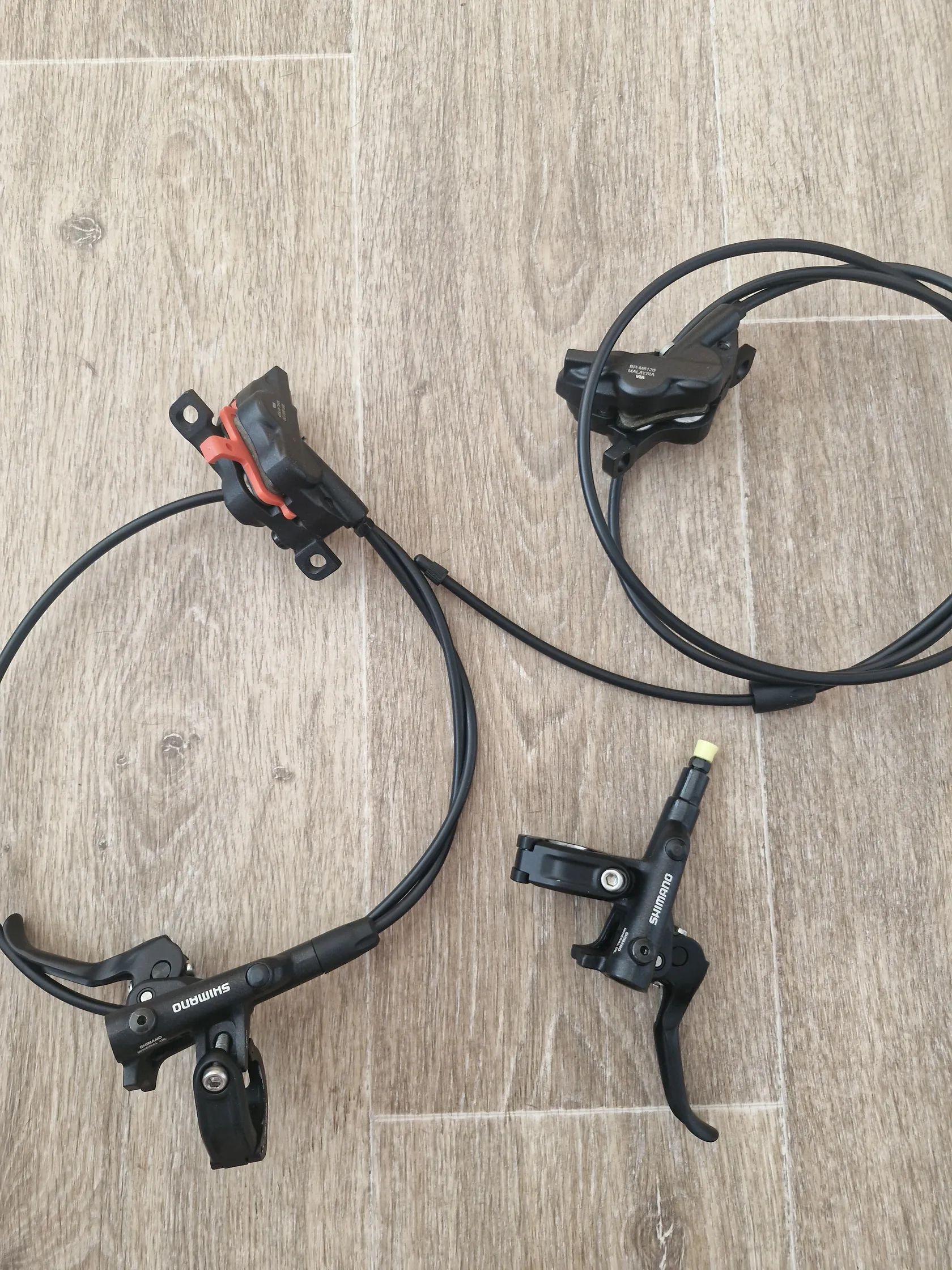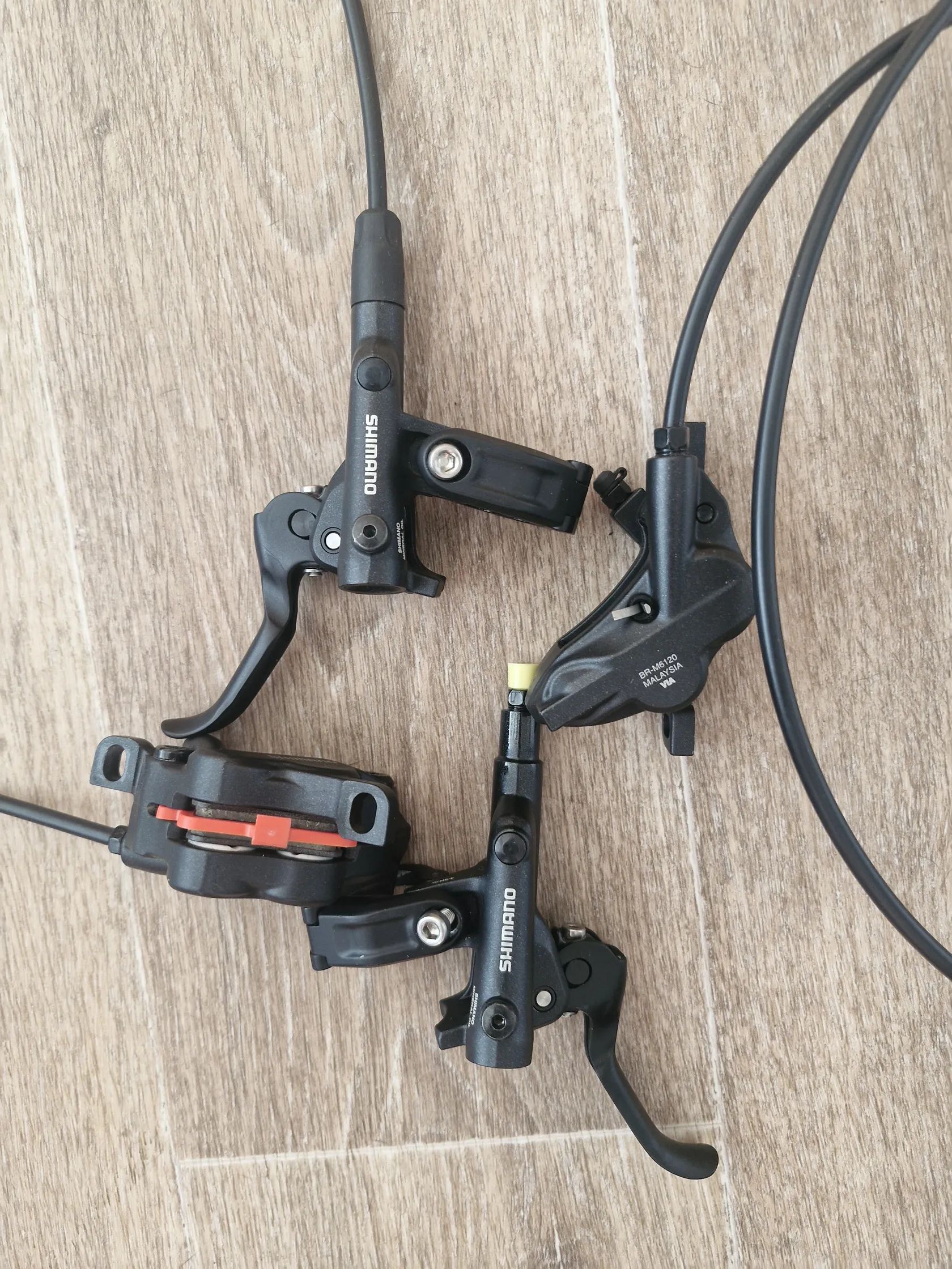 Ahoj prodam nepoužite, 4 pistkove brzdy osvědčene shimano Br M6120,sundané z nového kola. Hadice jsou zkráceny..předni jsem naměřila cca délku jen hadice 82cm..zadní 152cm...blbě se mi to měři:)..zadní brzda je rozpojena,předni je v kompletu,destičky plné,top.stav...