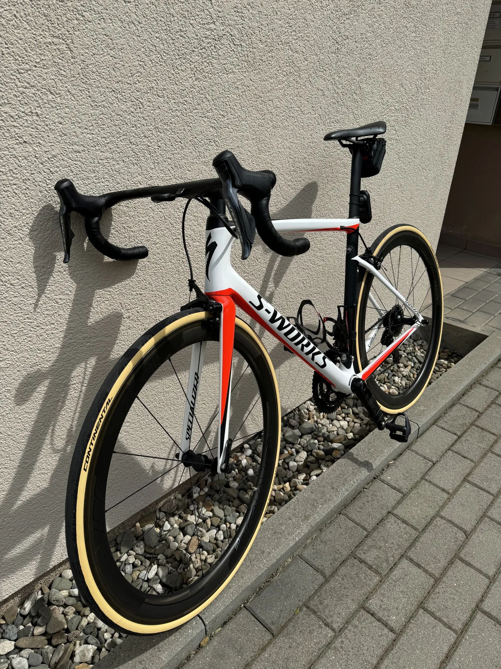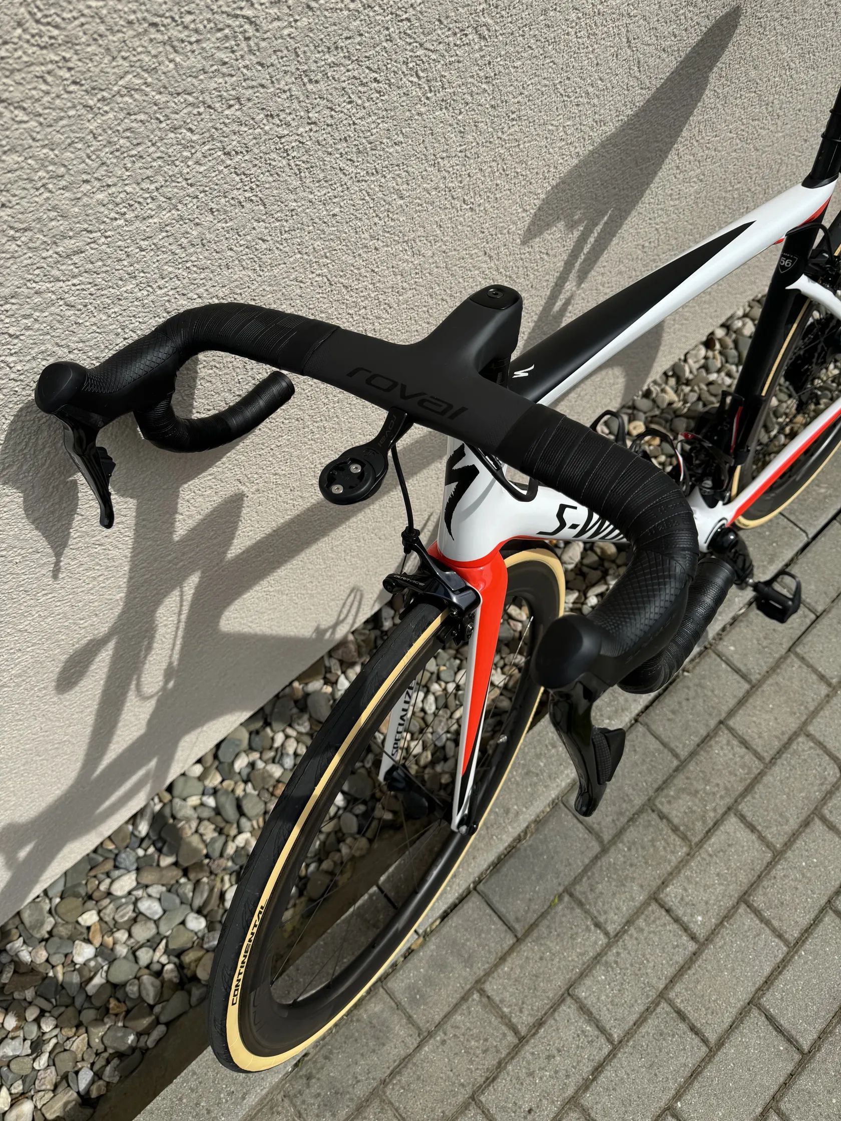Prodám lehce jeté kolo Specialized S-Works Tarmac SL6 z karbonu Fact 12r ve velikosti 56 na kompletní sadě Shimano Dura-Ace R9150 Di2 2x11, kliky S-Works Carbon, řídítka top model Specialized Roval Rapide Cockpit a kola Roval CLX 50 (Nejvyšší model) v plášťové variantě 30mm Continental Grand Prix 5000. Sedlo Fizik, celé kolo je v top stavu, kliky lehce jeté. Ke kolu doklady a nabíječka. Rozumná dohoda možná v závislosti na rychlosti a serióznosti. Opravdu skvělý stav. Váha na foto 6 kg.