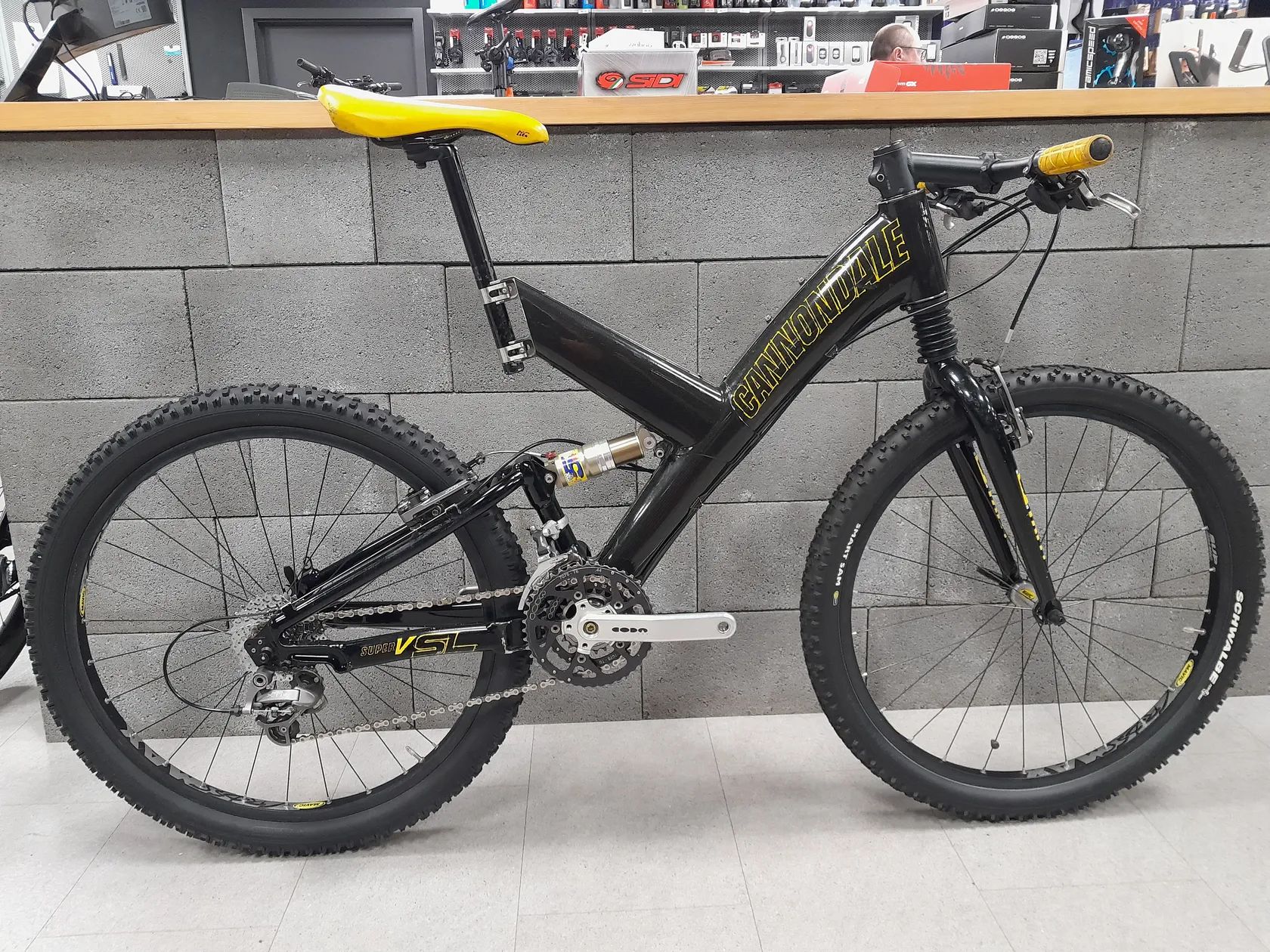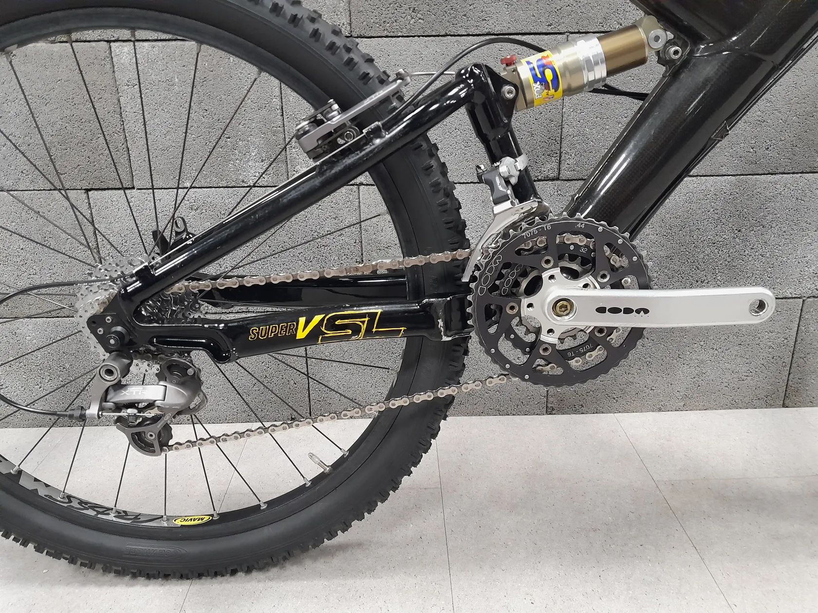 Prodám Cannondale Super V Raven 4000, rok výroby 1998 ve velikosti M. Nejvyšší model celoodpruženého kola tohoto roku. Kolo je osazené XTR V-brzdami, páčkami i přahazovačkou a klikami CODA Tarantula. Tlumič Fox Alps 5R i vidlice Fatty SL jsou po kompletní repasi. Všechny těsnění, olej i dráhy v teleskopu. U obou je možno nastavit odskok. Servis za cca 8000 Kč. Budoucí servis vidlice i tlumiče je možný u 4 KLUCI OD KOL.