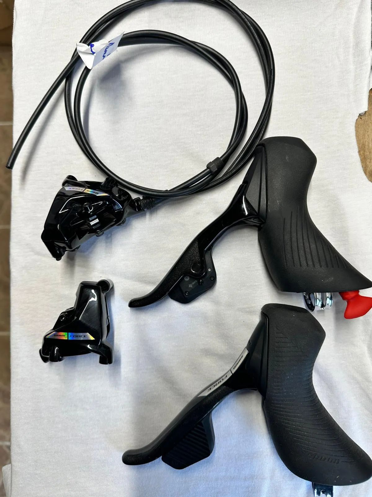 Prodám zánovní sadu SRAM Force ASX D2 2x12 sundanou z kola velikosti S. Páky, třmeny,hadice. Zadní hadici nutno dát novou, přední možná půjde použít. Já už sadu takhle kupoval tady na cyklobazaru na stavbu kola,ale nakonec nevyužiji budu dávat nový E1 tak pouštím dál.