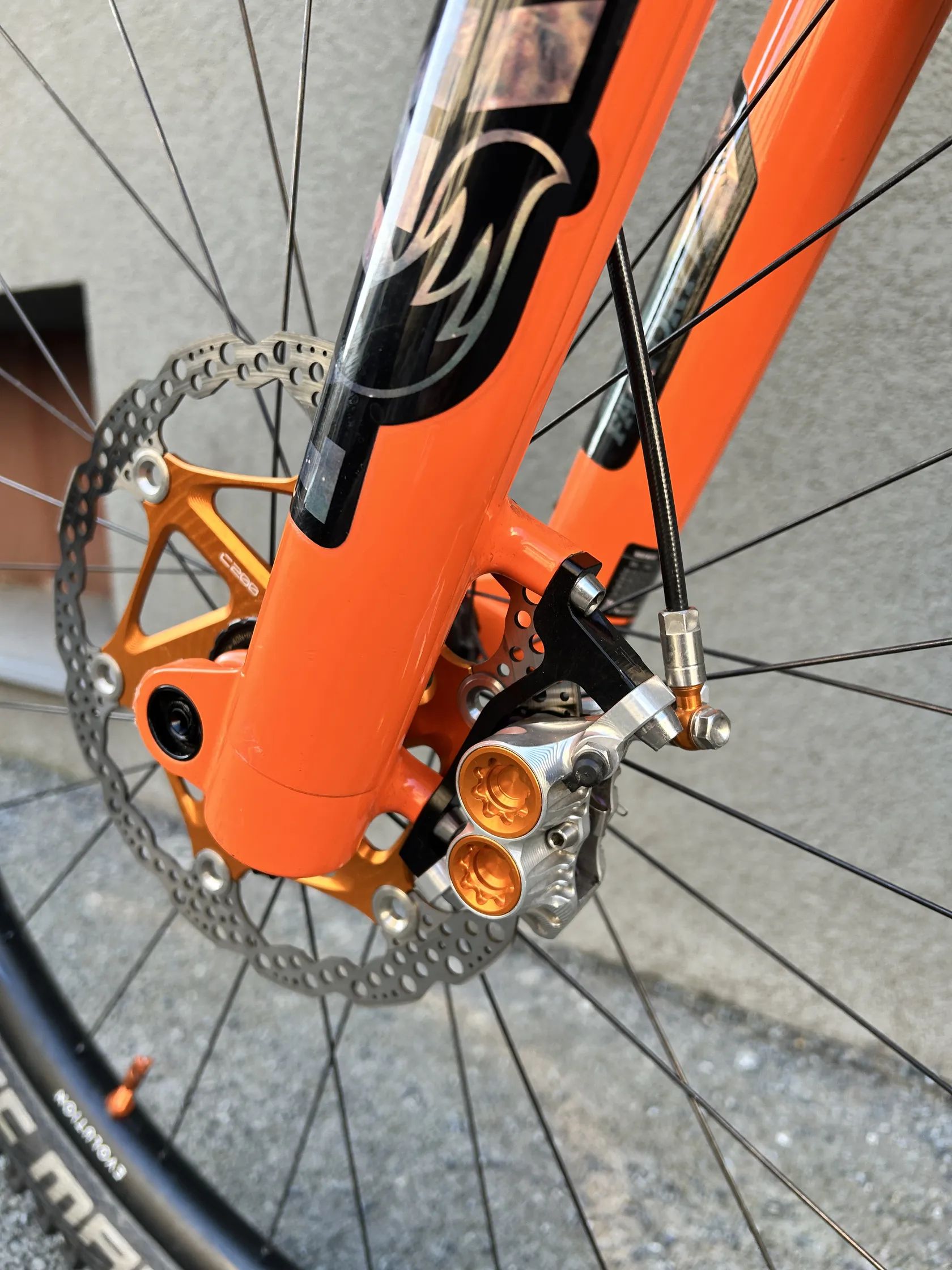 Brzdy: Hope Tech V4 – špičkové, velmi silné čtyřpístky pro náročné sjezdy.