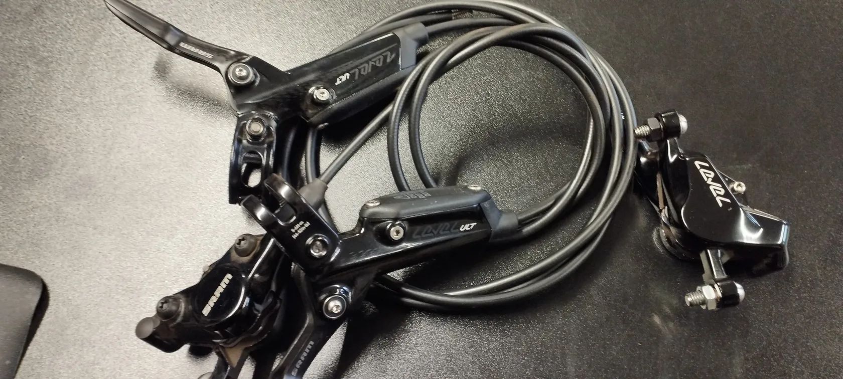 Prodám brzdy SRAM LEVEL ULTIMATE Carbon ,včetně kotoučů 160mm + 180mm