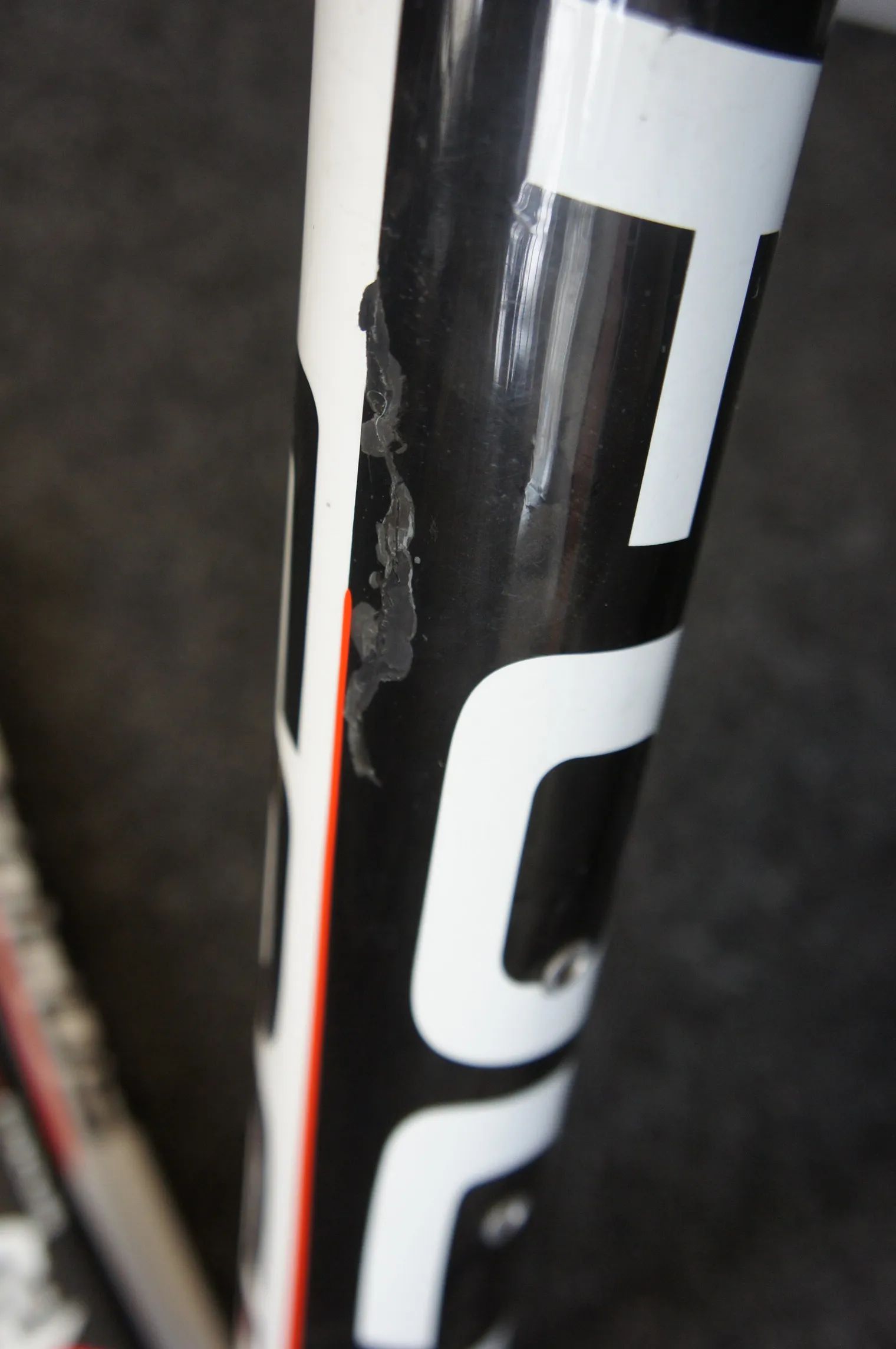 rám má naprasklou spodní rámovou trubku, vše drží.