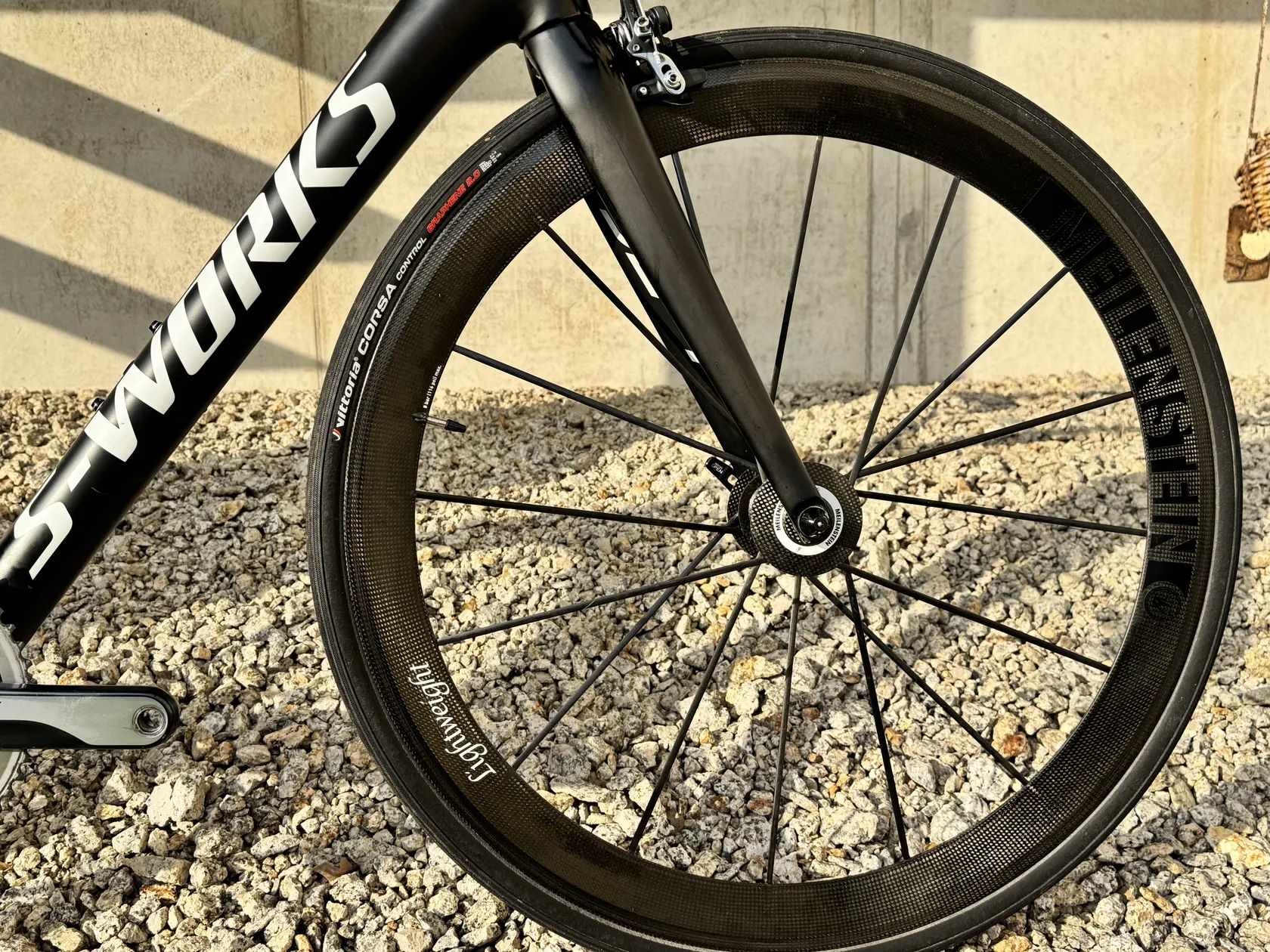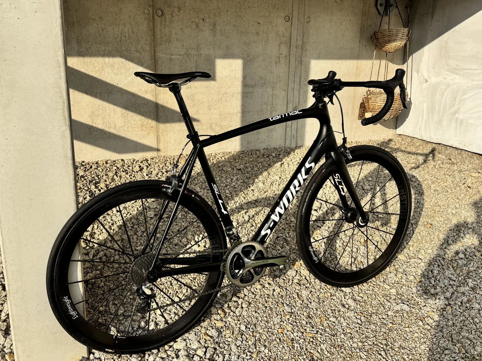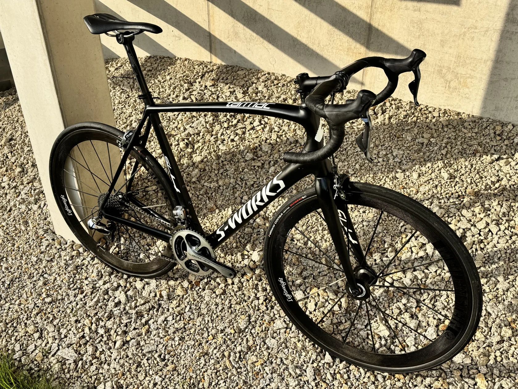 Prodám silniční kolo Specialized S-Works Tarmac SL4 Dura-Ace Di2, ve velikost 61" (momentálně nastaveno na 188cm). Kolo bylo ježděno rekreačně a po celou dobu pečlivě servisováno u autorizovaného prodejce Kolokrám Liberec. Ke kolu mám veškeré doklady i fakturu o koupi. Osazení tvoří kompletní sada Shimano Dura-Ace Di2, řídítka S-Works Aerofly a karbonová kola Lightweight Meilenstein. Obuté jsou zánovní pláště Vittoria Corsa 28 mm. Kolo je celkově ve velmi dobrém stavu, pravidelně servisované. Krásný lehký stroj na špičkových kolech, ideální pro někoho, kdo hledá klasickou silničku na ráfkových brzdách. Pouze osobní předání v Liberci, případně po domluvě v Praze.