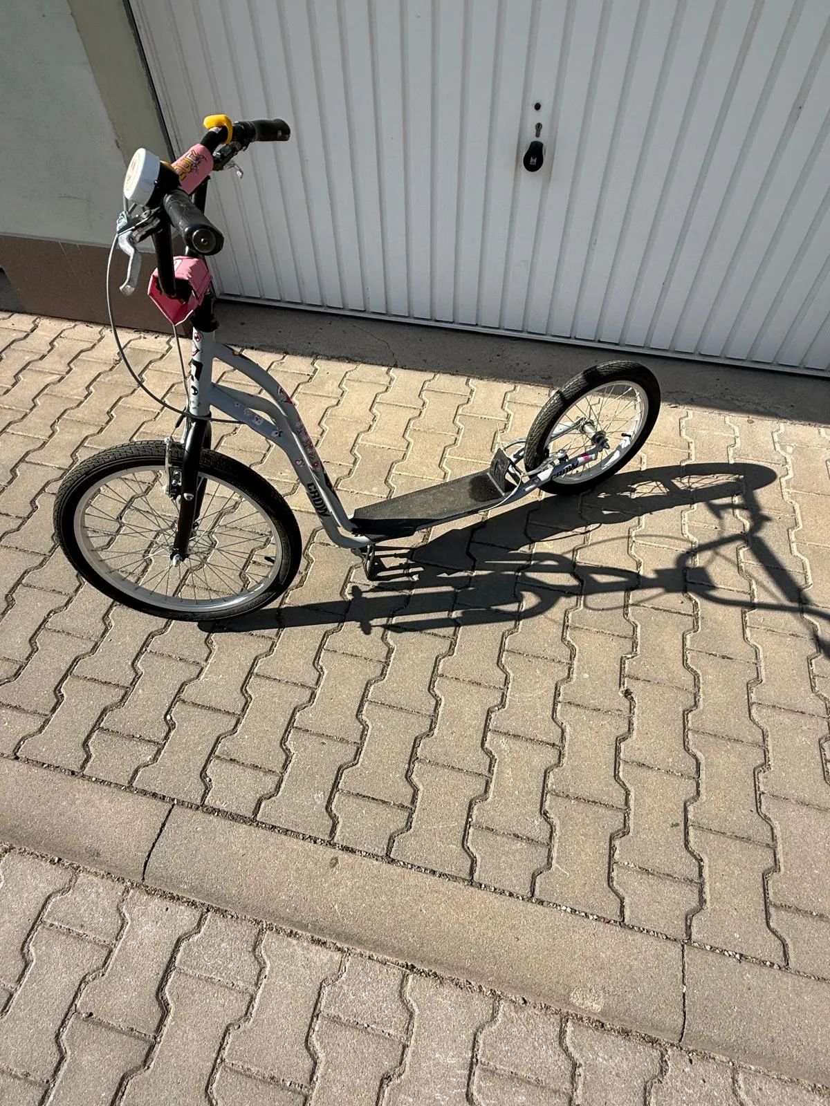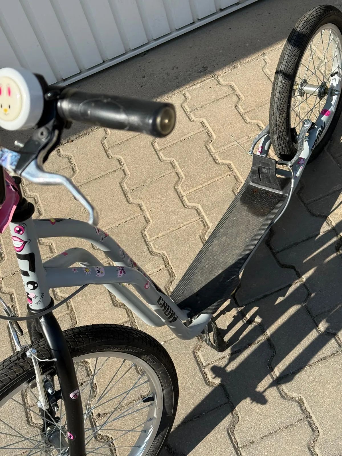 Prodám dětskou koloběžku Quick Crow 20/16. Pro věk 10+. Výška min.140cm. Nosnost do 120kg. Váha 7,2kg. Stav zachovalý, téměř neuživaná a vymazlená samolepkami pro dívku. Mohu předat v Brně. Koloběžka Quick CROW 20/16. Koloběžka je postavena na odolném ocelovém rámu. Díky menšímu zadnímu kolu se vám bude perfektně manévrovat.