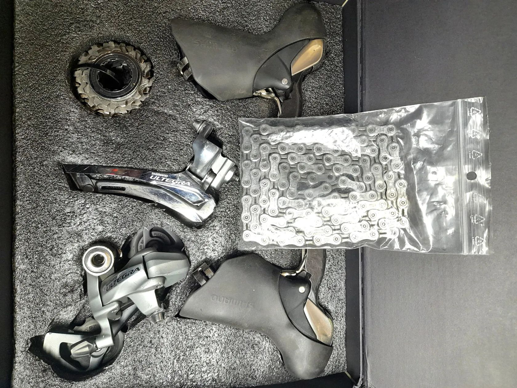 Prodám použitou sadu Shimano Ultegra 6700 2x10. Pravá páka neřadí, prasklá pružina - na opravu nebo na náhradní díly. Zbytek sady plně funkční. Kazeta 105 11-28 + řetěz OK. Osobní odběr, možno přiblížit Náchod, Jaroměř. Zásilkovna + 89 Kč.