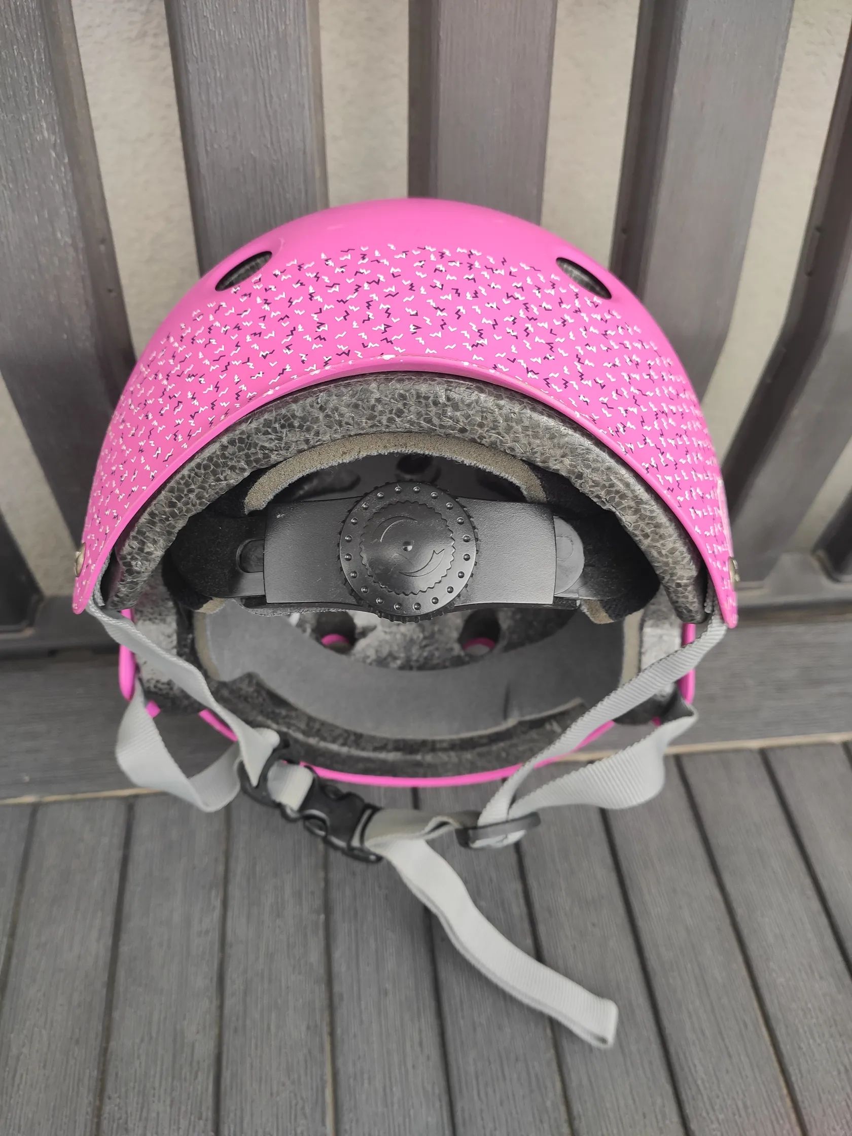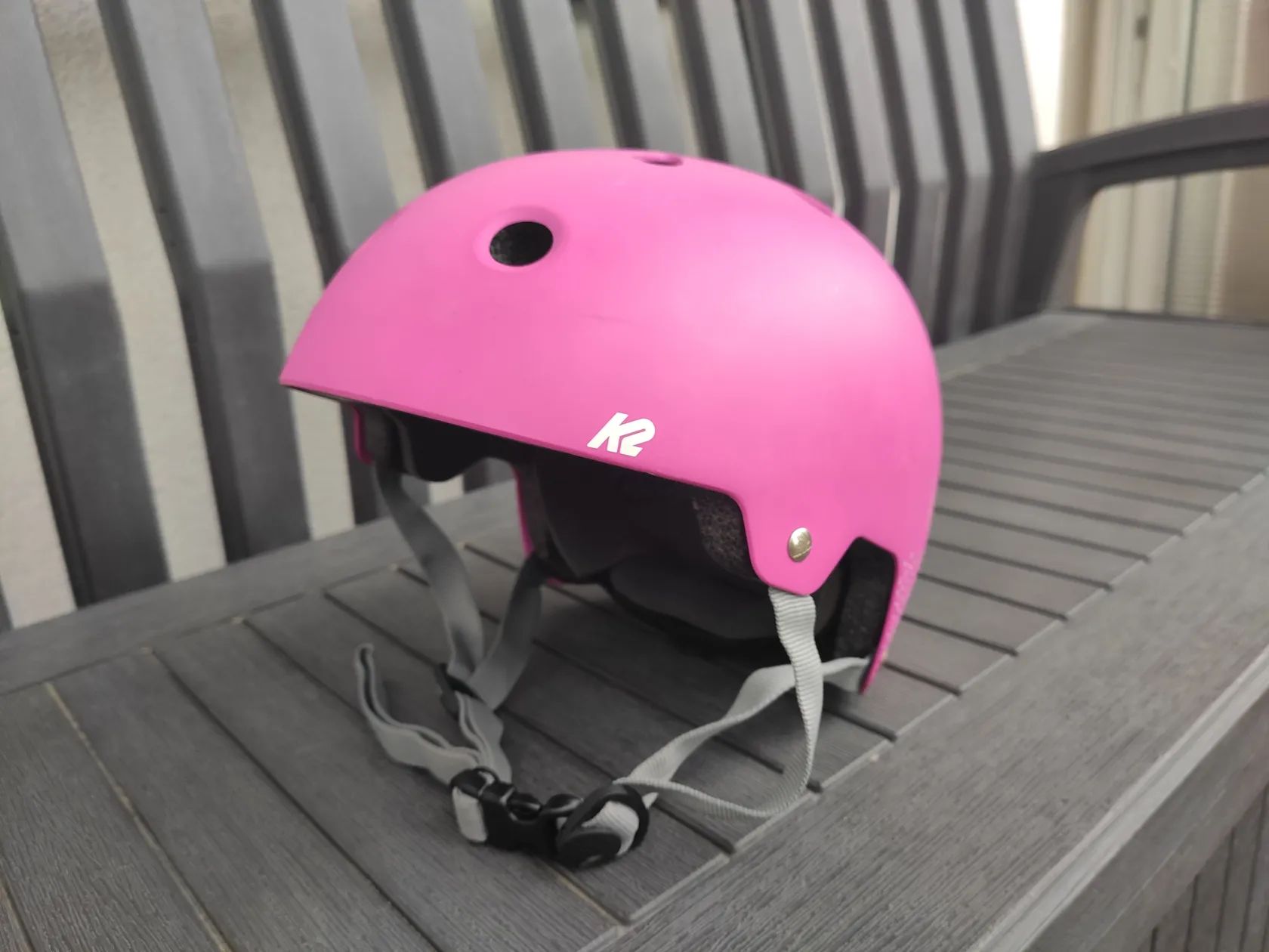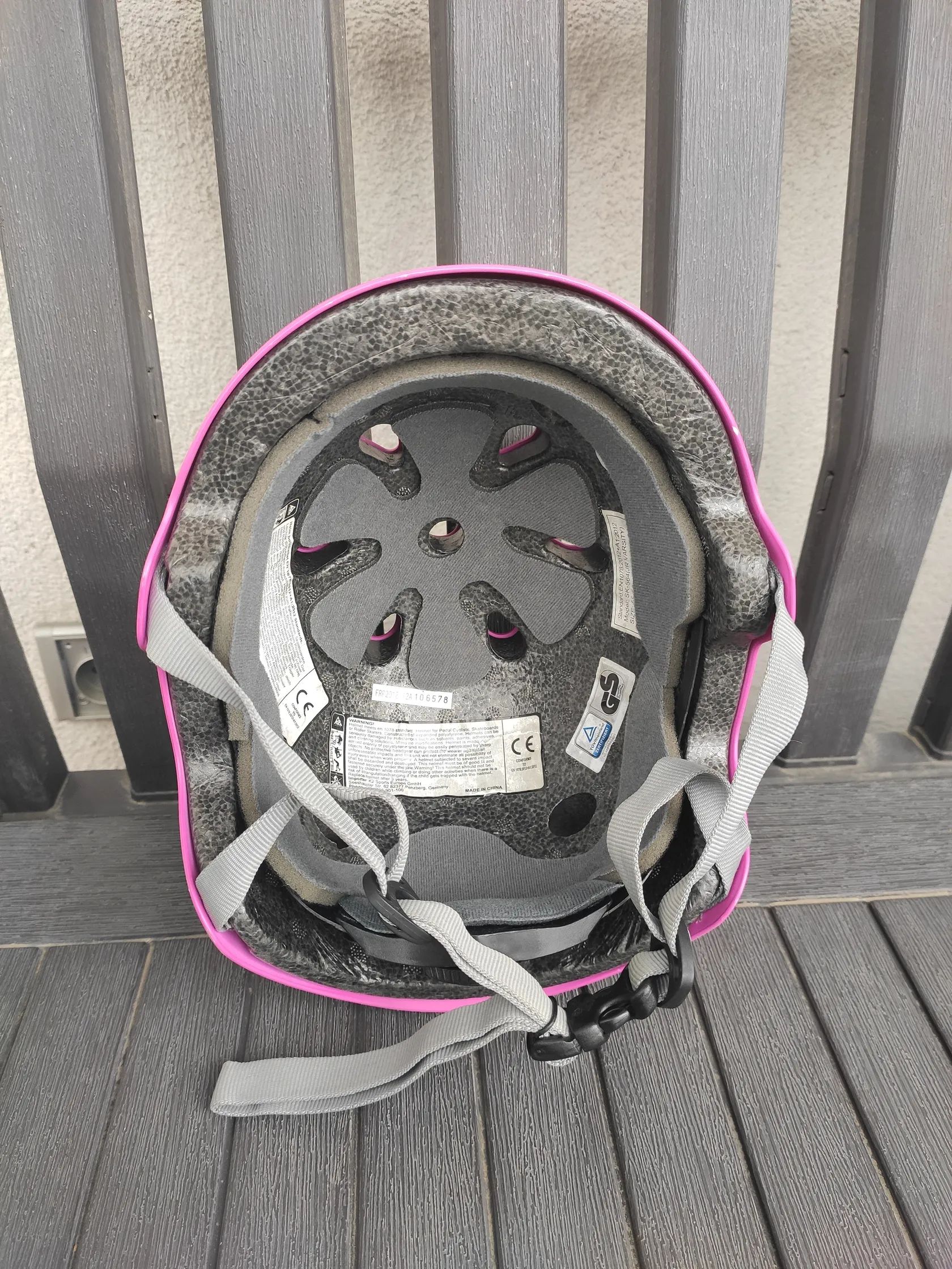 Prodám použitou v roce 2020 pořízenou sportovní dětskou inline helmu růžové barvy od výrobce K2 Skate (viz foto včetně dokladu o pořízení, originální krabice a manuálu), používanou pro jízdu na kole a bruslení (inline i klasické), velikost M (velikost 55-58 cm, hmotnost 414-454 g), vhodná pro dívky ve věku cca 7 až 10 let, opotřebení úměrně stáří. K helmě přidám zdarma 4 x nepoužívané chrániče značky Elaot černé barvy (2 x na loket a 2 x na kolena), velikost S. Předání POUZE osobně.