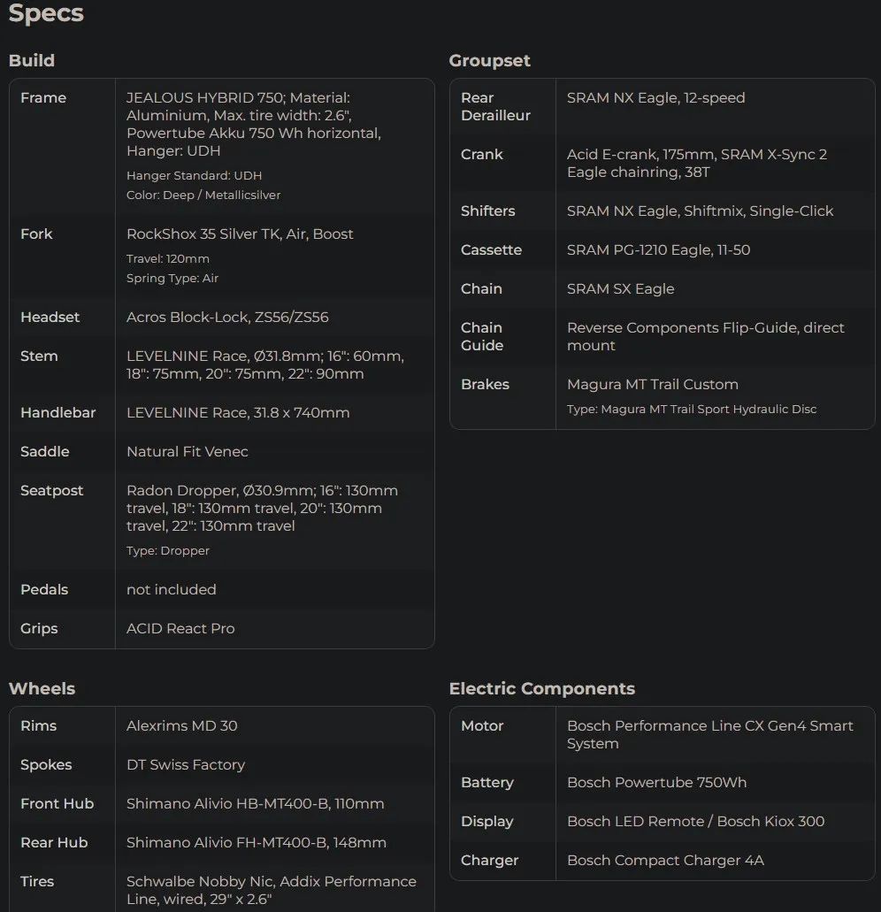 • Radon JEALOUS HYBRID je sportovní hardtail e-MTB – zaměřený na efektivní jízdu v terénu i na delší vyjížďky.