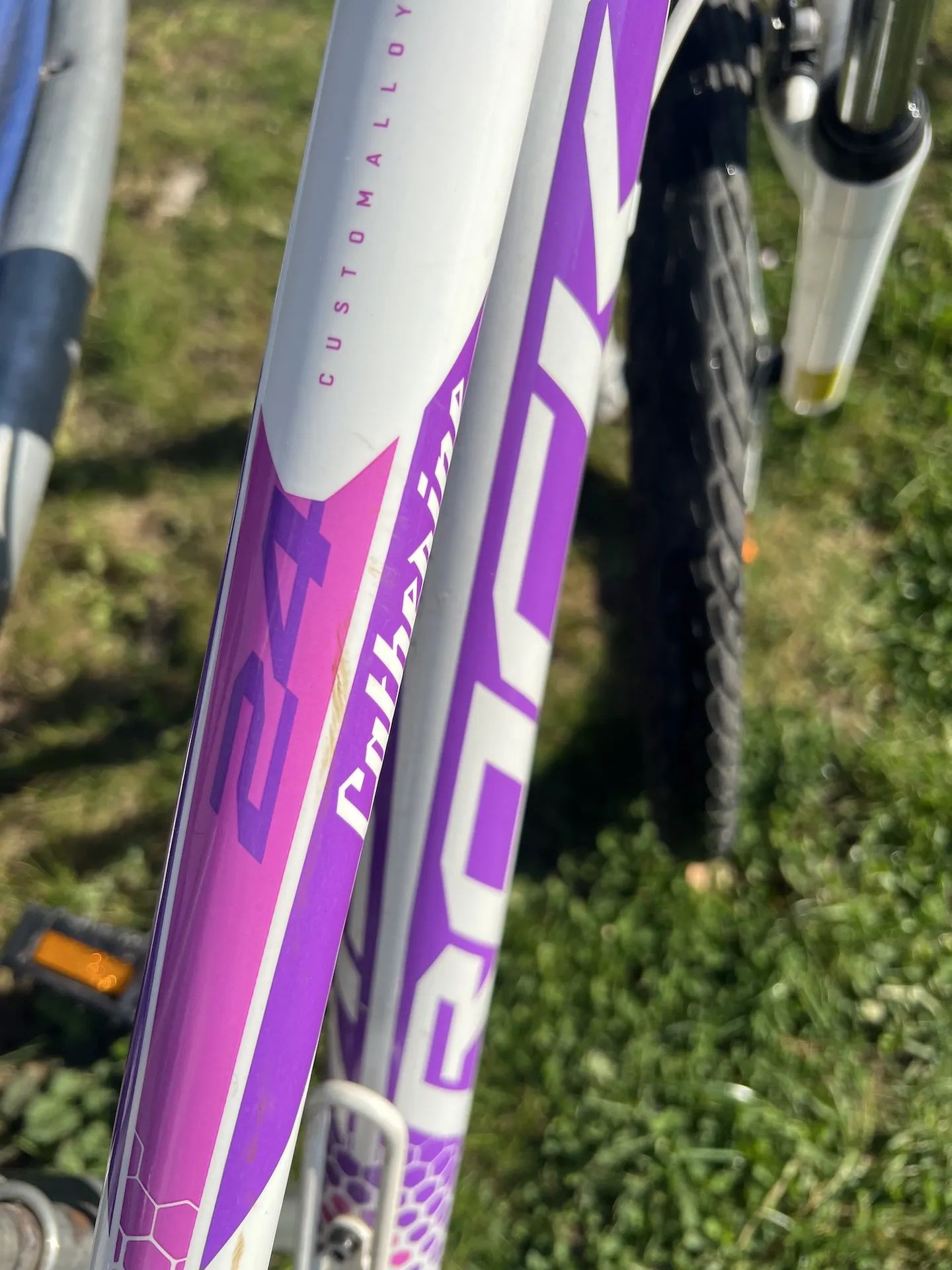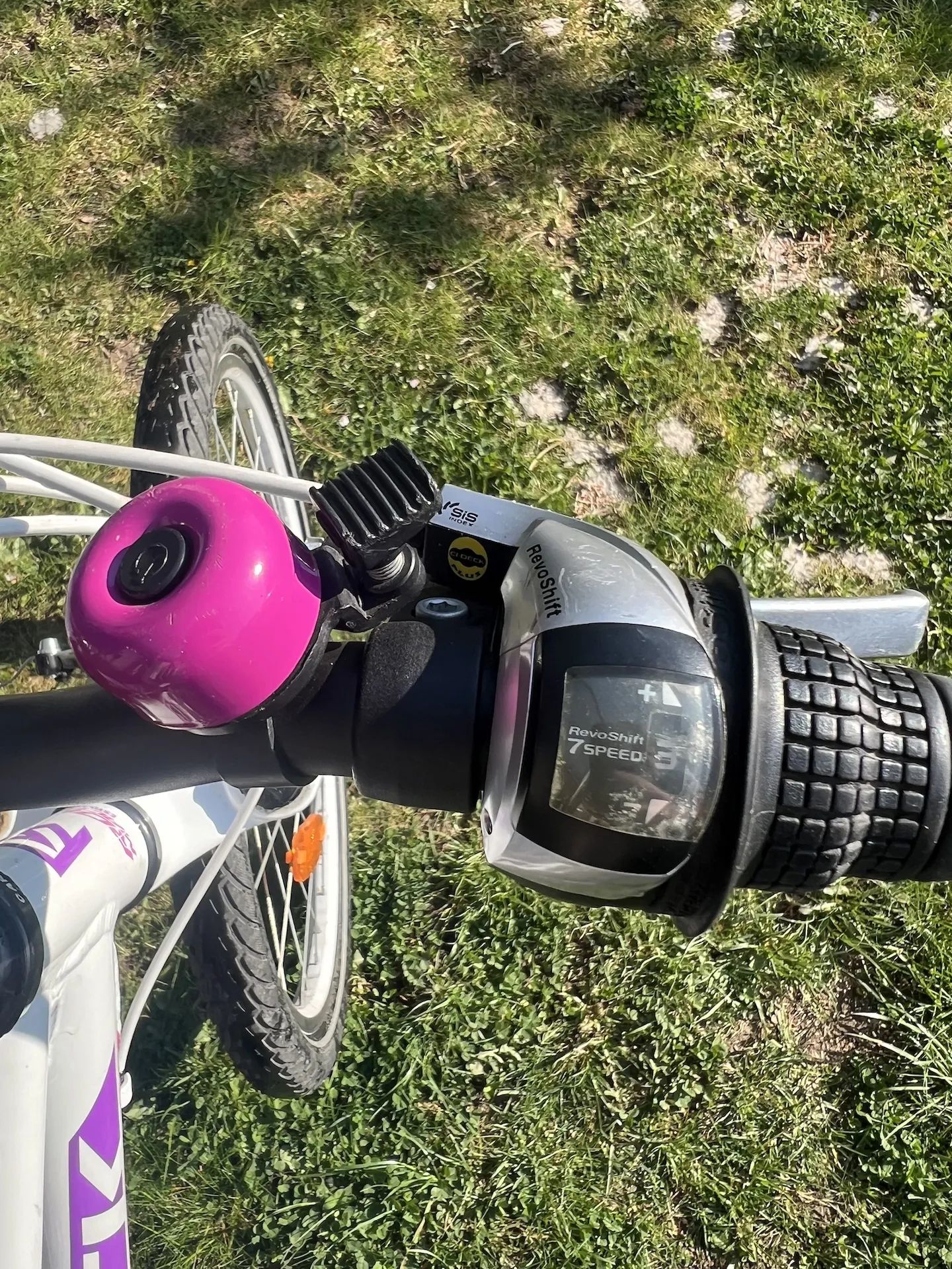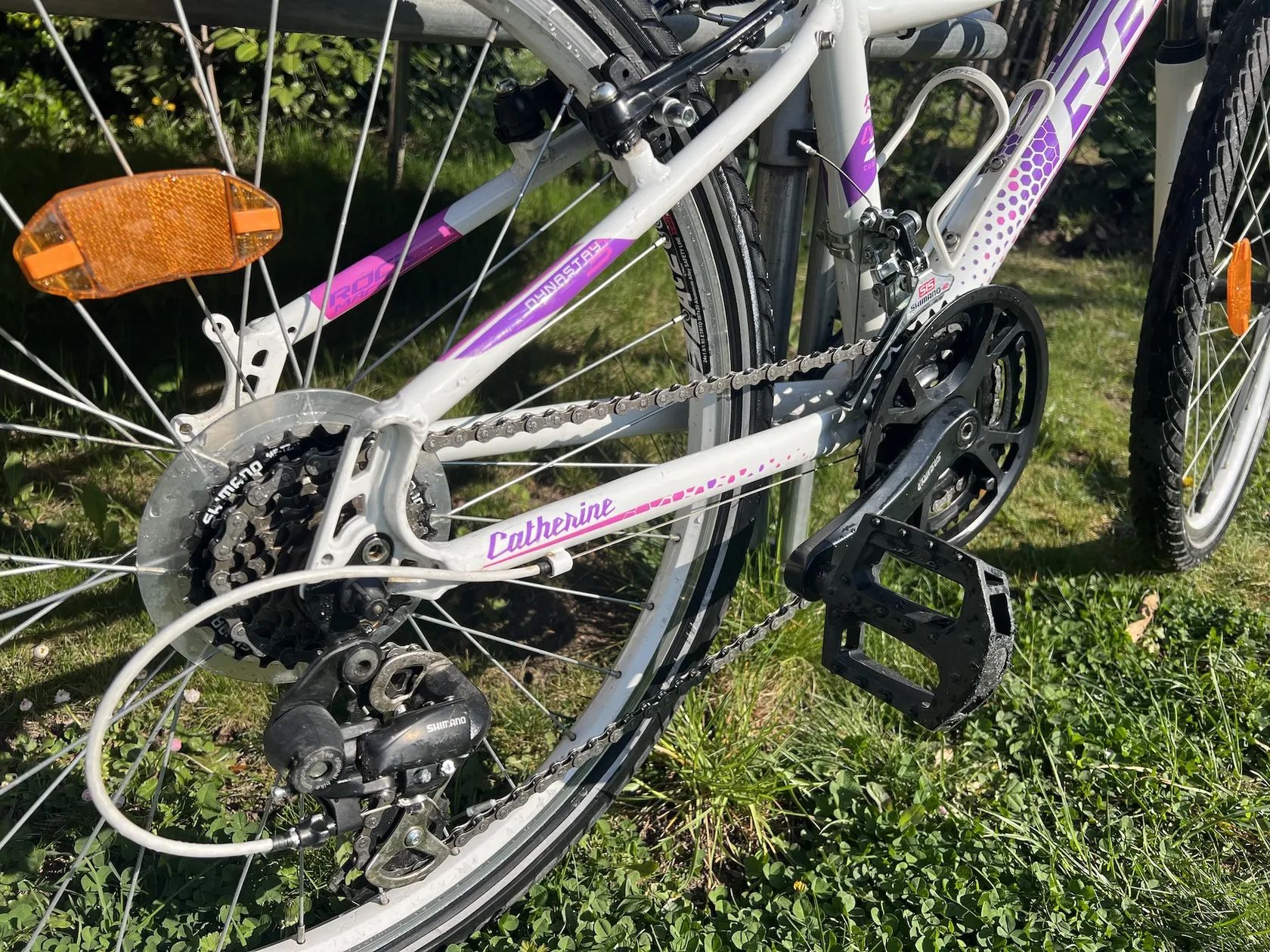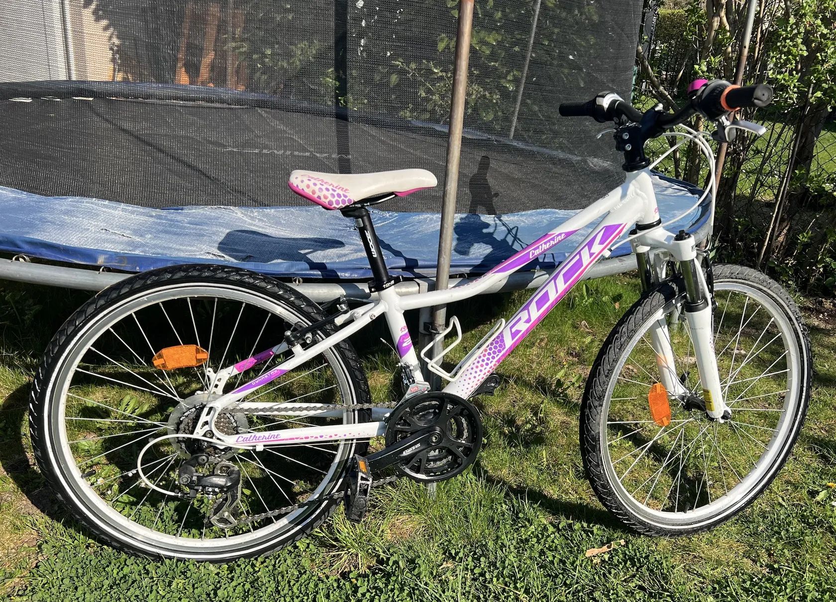 Dívčí kolo s koly velikosti 24. Vhodné pro dítě výšky cca 120 - 145 cm. Řazení revoshify, přehazovačka 7 rychlostí, přesmykač 3 rychlosti. Kolo v dobrém stavu, drobné oděrky na laku.
