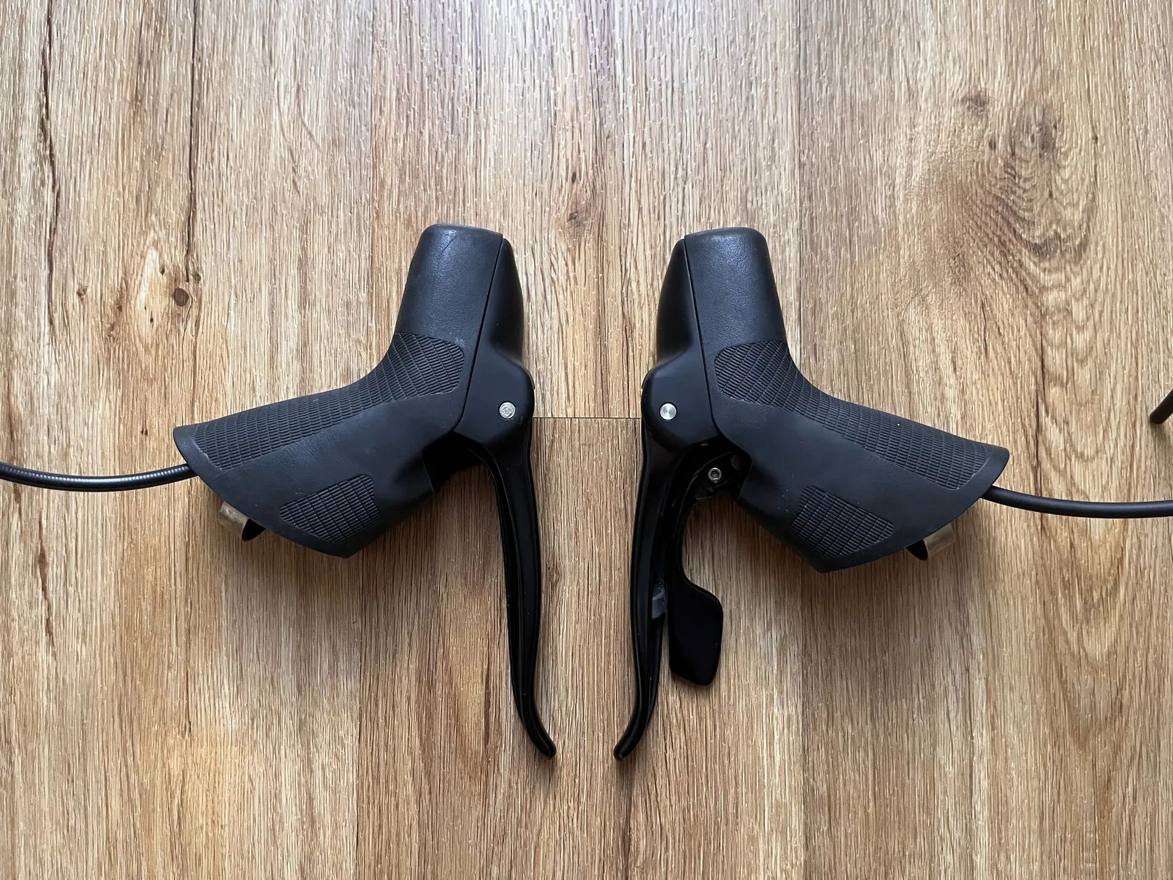 Páky s minimálními kosmetickými vadami, mechanicky plně funkční. Brzdové třmeny v provedení Flat Mount. Kazeta SRAM PG 1170 11-32 zubů s minimálním opotřebením. Přehazka SRAM APEX 1 s dlouhým ramínkem pro kazetu s až 42 zuby.