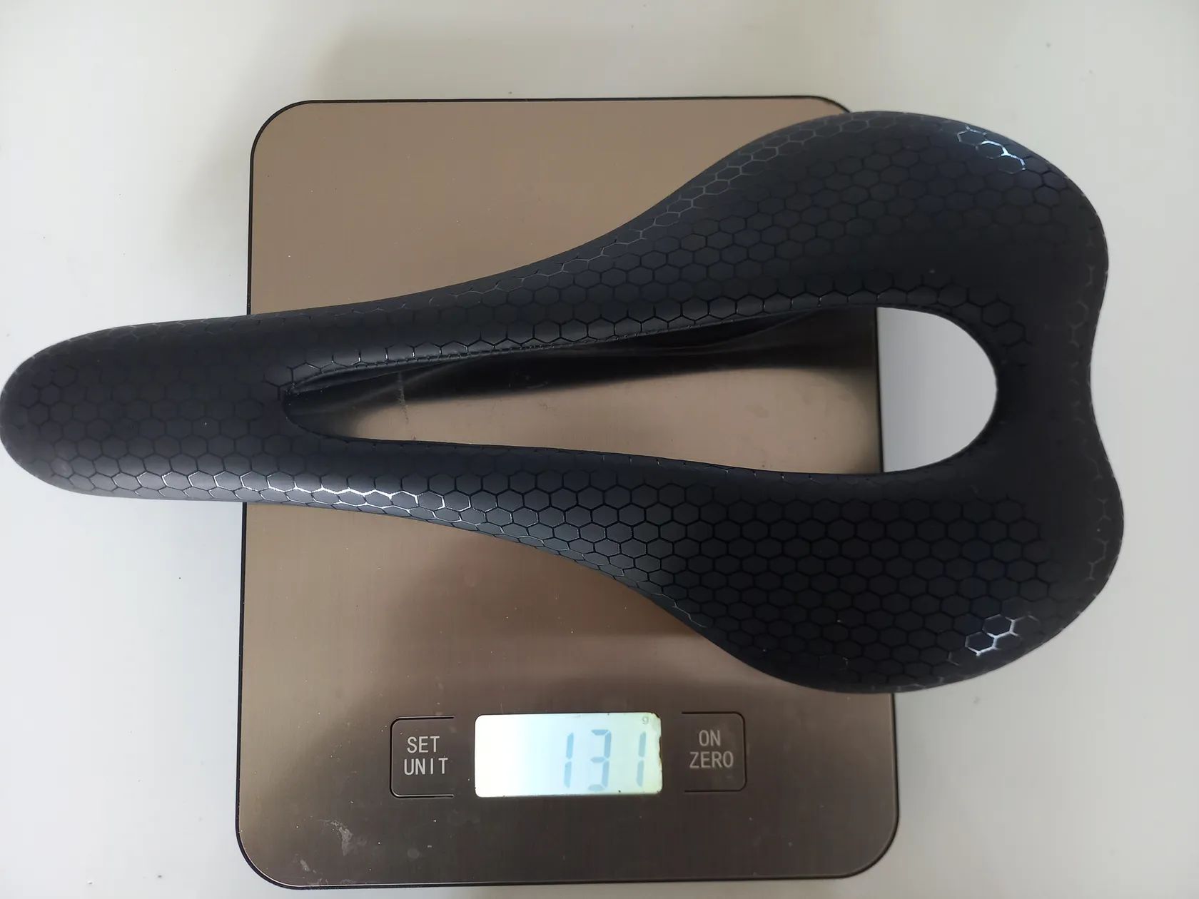 Lehké karbonové sedlo, přitom dostatečně polstrované, velký otvor. Jen vyzkoušené - nesedla mi šířka.