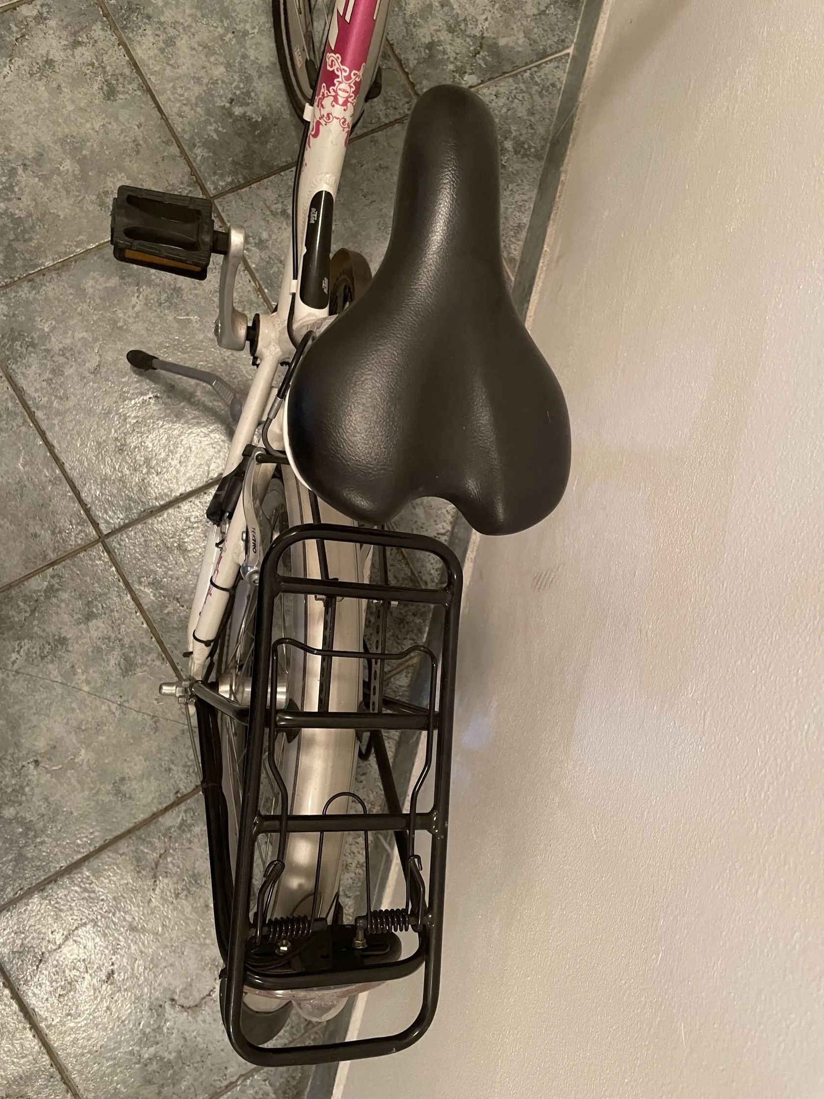 Kolo je ve velmi dobrém stavu, plně funkční, pouze běžné známky používání. Výbava: blatníky, zadní nosič, osvětlení na dynamo, stojánek, 6 rychlostí (přehazovačka), zvonek. Barva: růžovo-fialová a bílá - vhodnější pro mladou sportovkyni (6-10 let, dle výšky). Poznámka: světlo momentálně nesvítí – pravděpodobně stačí vyměnit žárovku nebo zkontrolovat dynamo.