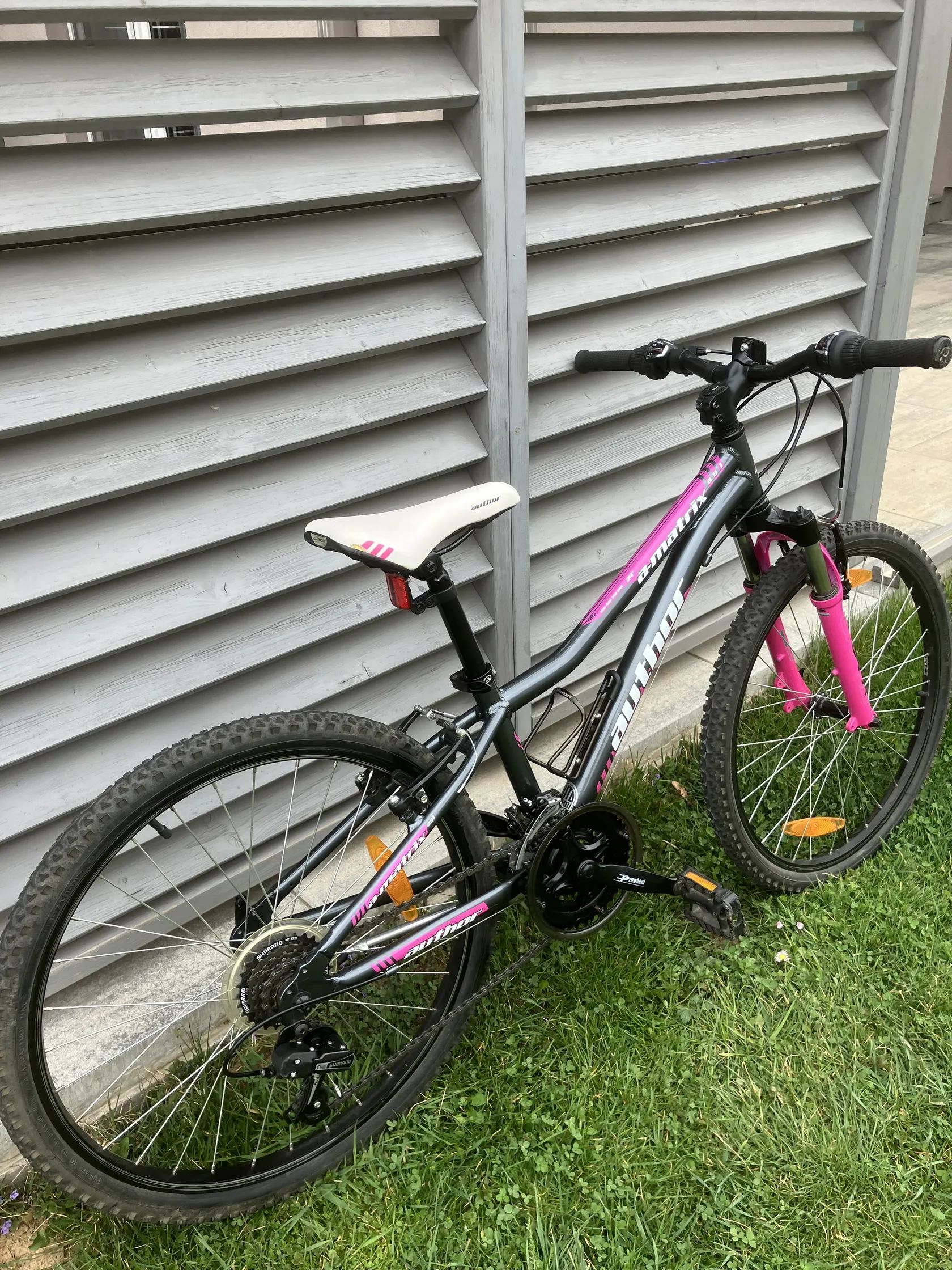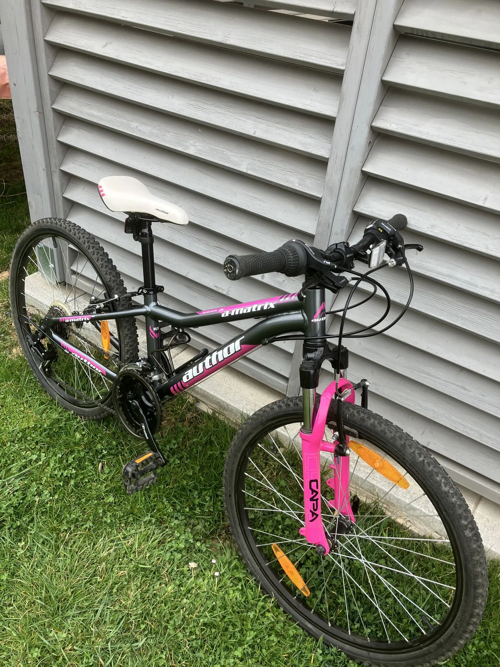 Průměr kol 24" □ Vhodné pro výšku 125–140 cm □ Hmotnost 12,4 kg □ Lehký duralový rám □ Komponenty SHIMANO, 6x3 rychlostí □ Odpružená vidlice RST Dětské kolo Author A-Matrix 24 - pro výšku cca 125-145cm věk 6-9 let. Pěkný stav, málo ježděné, po dceři bohužel z něj vyrostla. Osobní předání: Heřmanův Městec, Chrudim, Pardubice