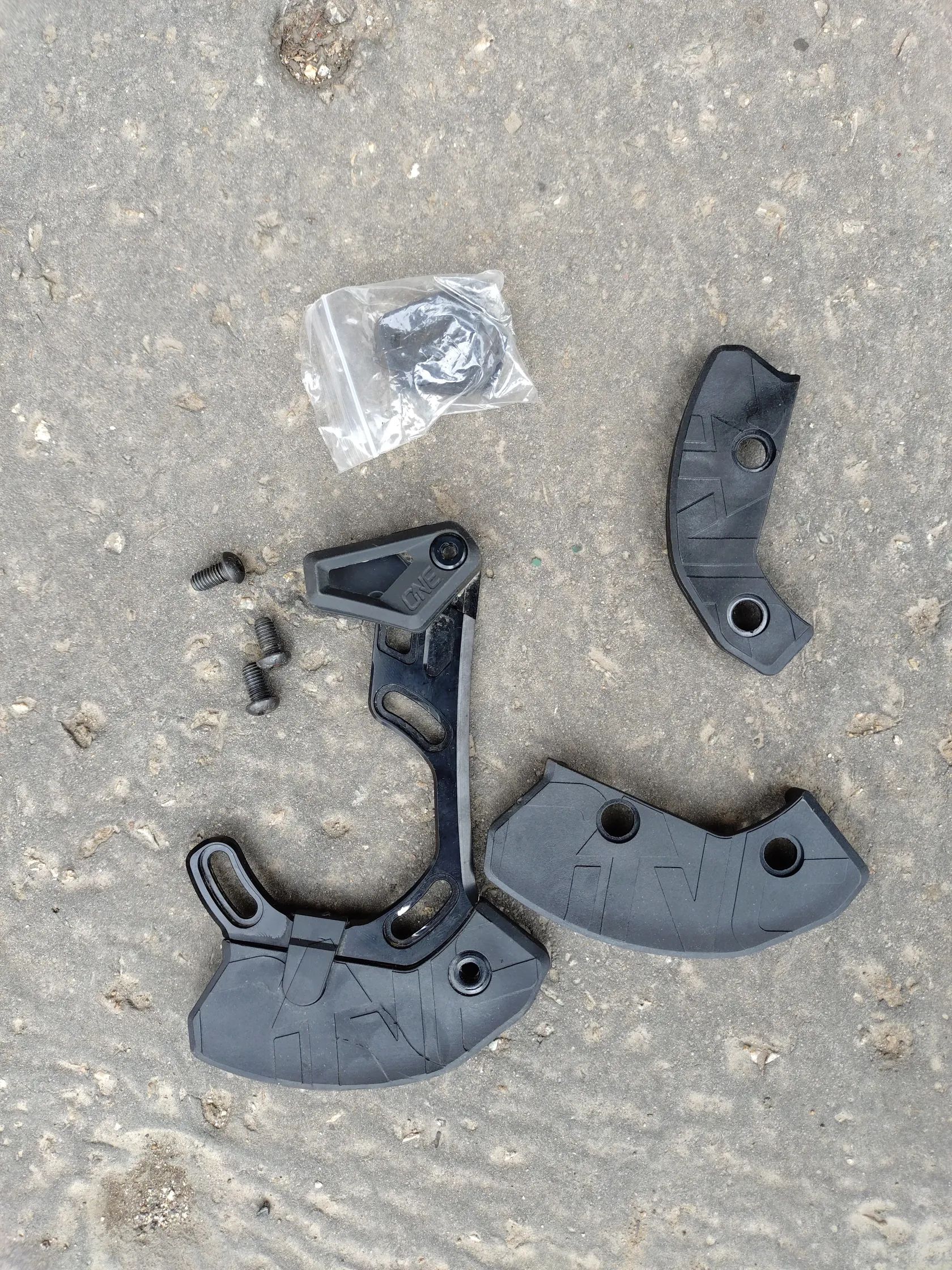 Lehké vodítko řetězu s nárazníkem OneUp pro jednopřevodníky, 28-36z (tři různě velké nárazníky v balení), nerezový hardware, hmotnost 105g (32-34z).