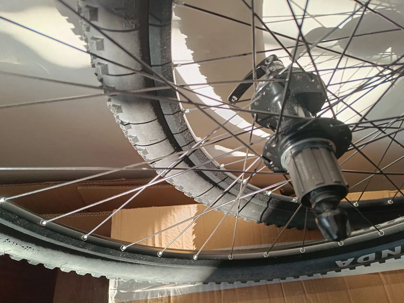 Nové a rovné, pneu nejeté Jen na diskové brzdy, uchycení kotouče 6děr Náboje Shimano HB(FH)-TX506 ,zadní náboj na kazetu 8-11s Prodej možný i bez pneu(-500,-Kč) Paprsky Cn-Spoke černé 32 na ráfku