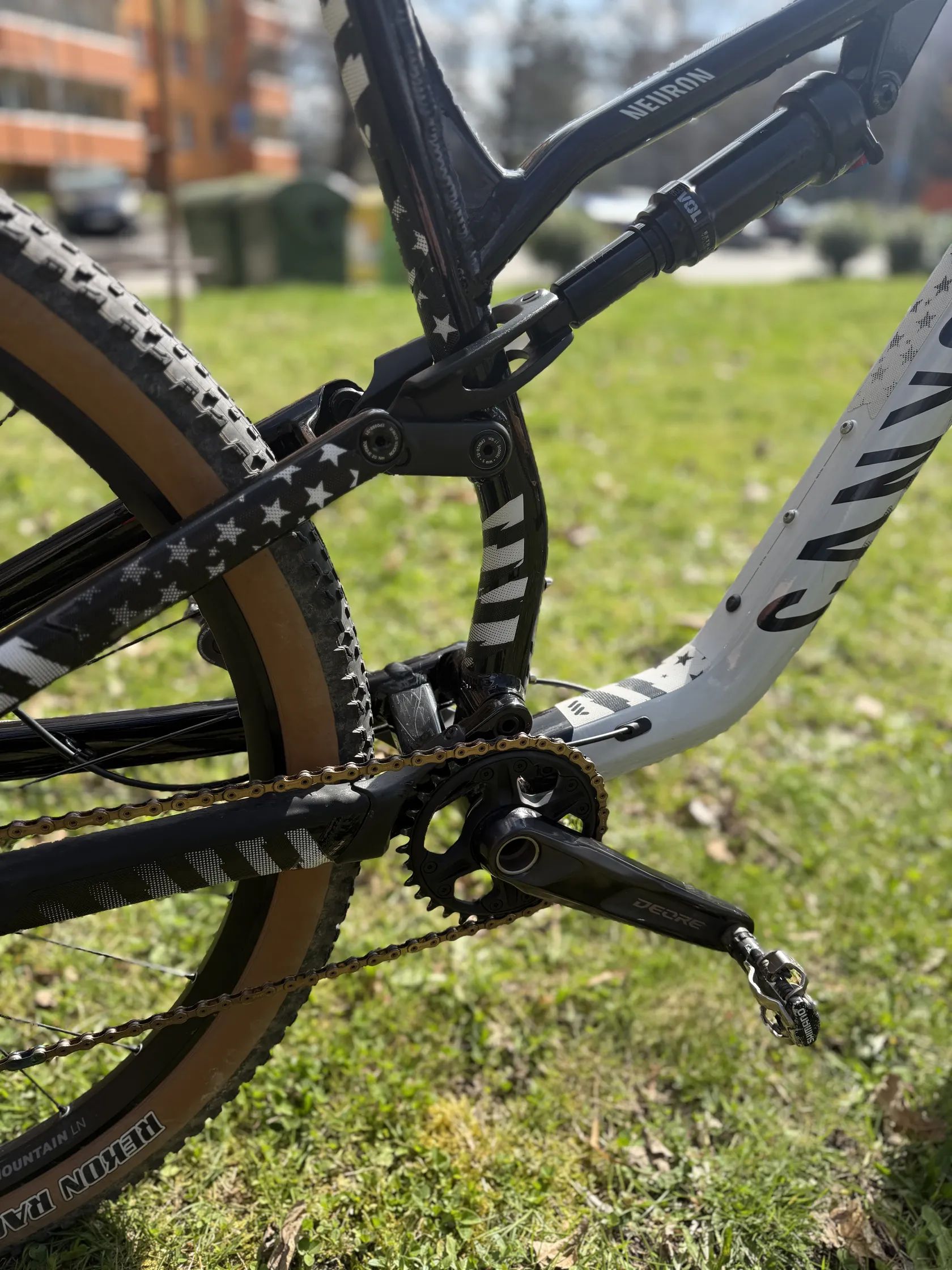 Nabízím k prodeji celoodpružené horské kolo Canyon Neuron 6. Velikost rámu XL, kola jsou 29". Kolo je ve výborném technickém i vizuálním stavu rám je prakticky bez škrábanců, bez jakéhokoliv většího poškození. Vše funguje perfektně, kolo je seřízené a připravené na jízdu.Kolo je osazeno komponenty vidlice Fox 34 Rhythm se zdvihem 140 mm, zadní tlumič FOX Float DPS Performance. Řazení Shimano SLX 1x12, 4-pístové brzdy ShimanoXT, teleskopická sedlovka Iridium. Kola jsou DT SWISS LN Allmountain. Ke kolu přidám originální Canyon příslušenství: pumpičku na tlumič. Kolo nebylo jezdeno zavodne ale rekreacne.Kupovano 8.mesic 2023. Kolo stale v zaruce.