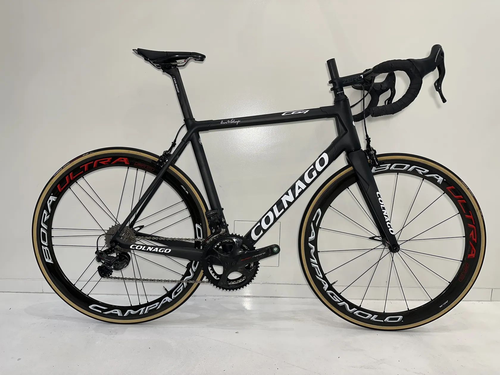 Colnago C64 – legendární ručně vyráběný rám z karbonu, navazující na tradici C60, jeden z posledních top modelů Colnaga s klasickým ráfkovým brzdovým systémem