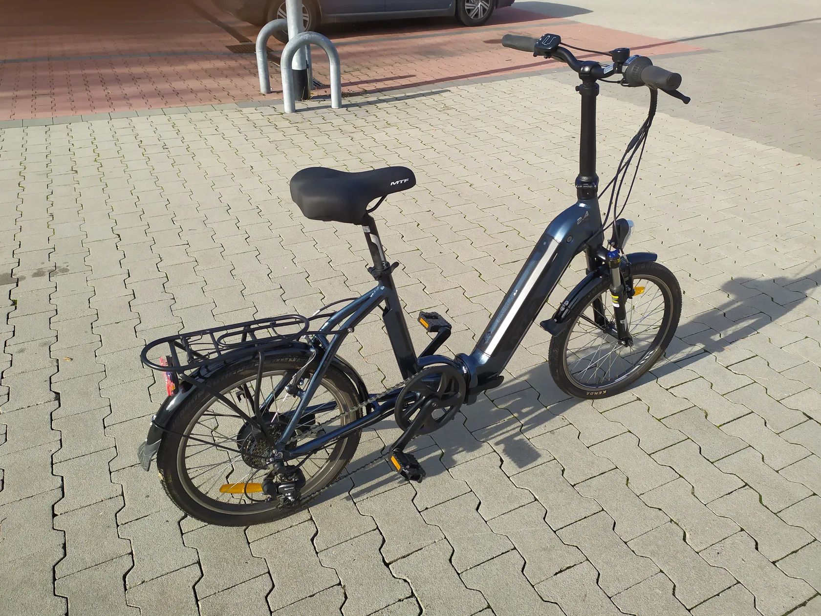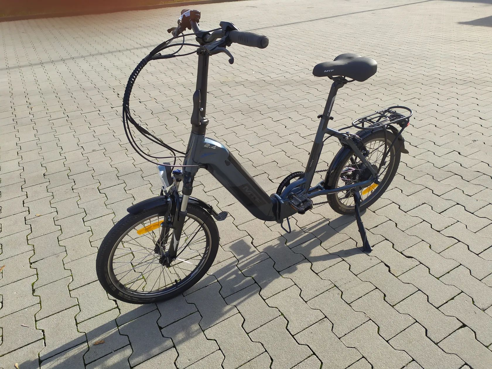 Zakoupeno pro seniorku, která najela asi 10 km, stav nového kola, nikdy neskládáno, baterie 500 Wh, dojezd cca 100 km, stojánek, světla, nosič, PC 32000,-