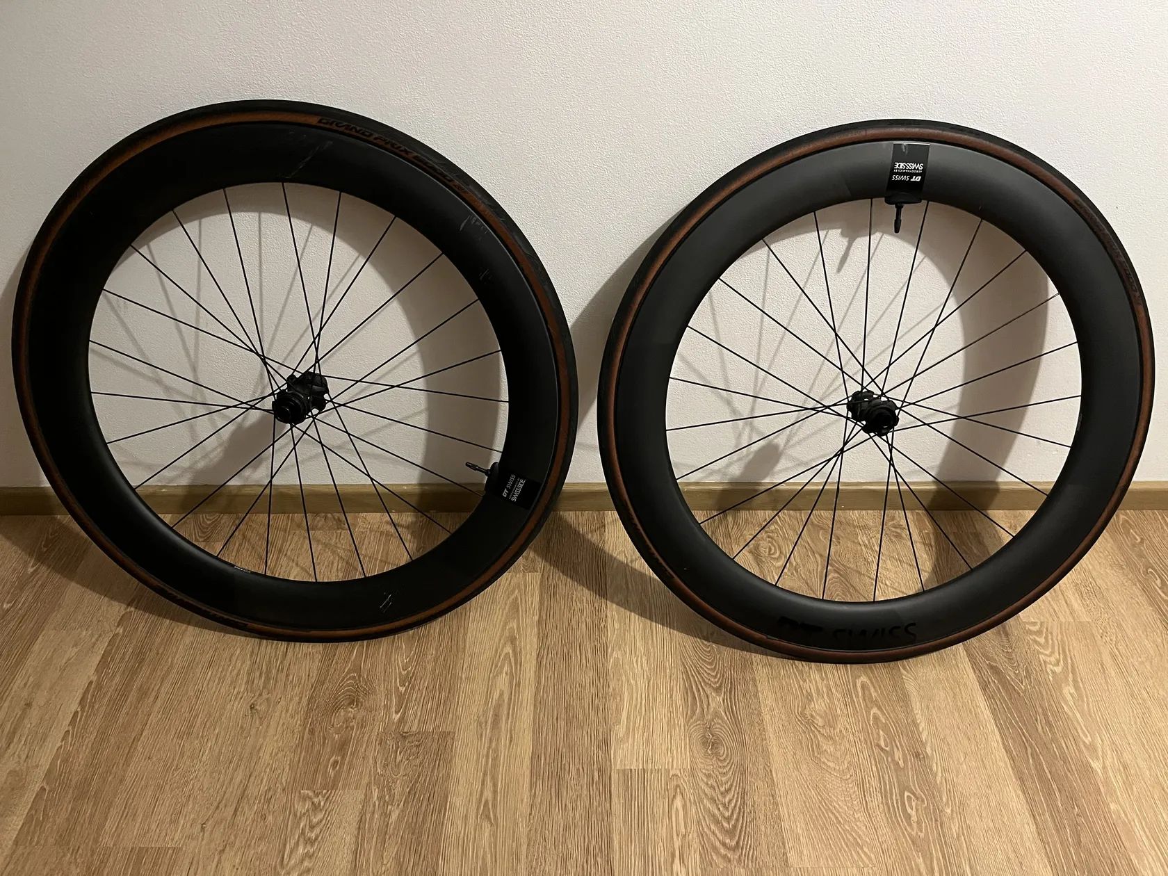 Prodám zapletené kola DT Swiss ARC 1650 DICUT DB sundané z kola BMC Timemachine disc 01, jeté cca 6000 km. Ráfky jsou rovné, nejsou nikde bouchlé, nebyly centrované. Náboje mají krásný hladký chod. Zadní ráfek je na jedné straně, na boku poškrábaný, viz foto - zohledněno v ceně. Myslím, že to půjde dobře zaretušovat. Na kolech nechám pláště. Preferuji osobní předání, dost cestuji, tak se případné můžeme někde domluvit a kola můžu dovézt.