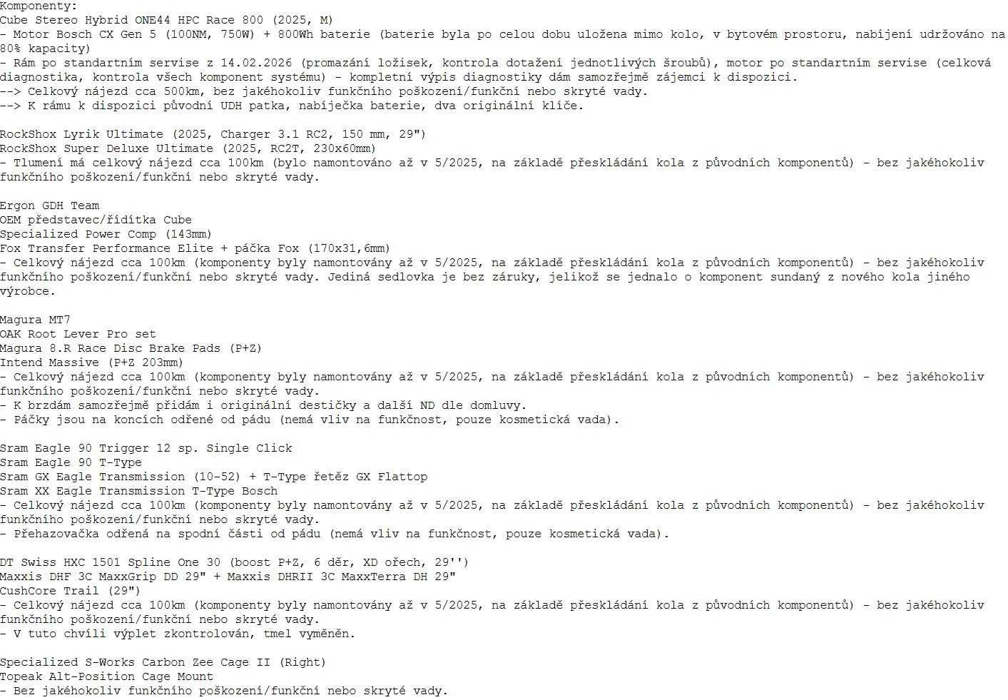 | Průměr kol: | 29" |