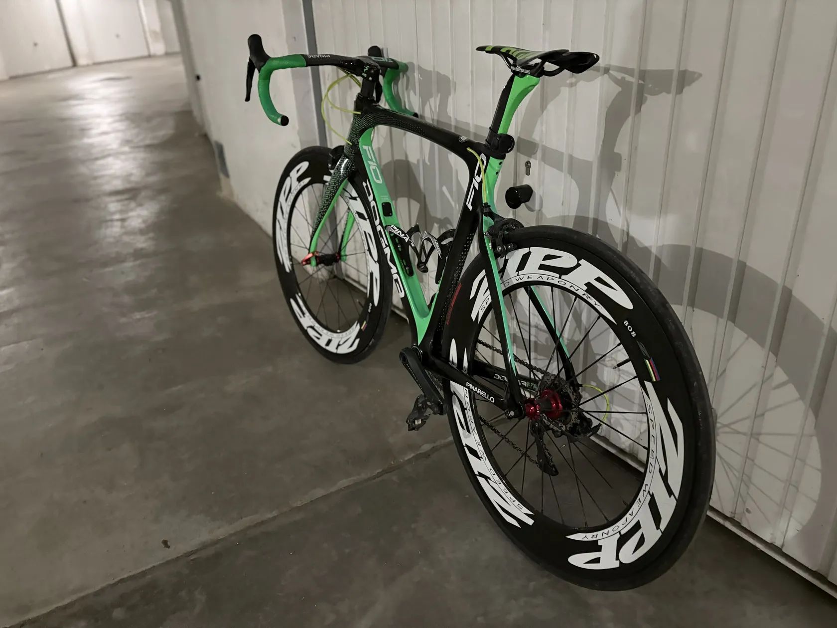 Prodám krásné, rychlé karbonové silniční kolo PINARELLO DOGMA F 10. Shimano ULTEGRA, převodník 53/39, kliky 172,5 mm, 11 speed - 10/28, zapletená karbonové kola Zipp 808, pláště Specialized Turbo PRO, sedlovka, sedlo, integrované řídítka v karbonu, karbonové pedály TIME. Najeto 8 000 Kč na suchu, jen rekreačně, žádný závod, žádný pád.