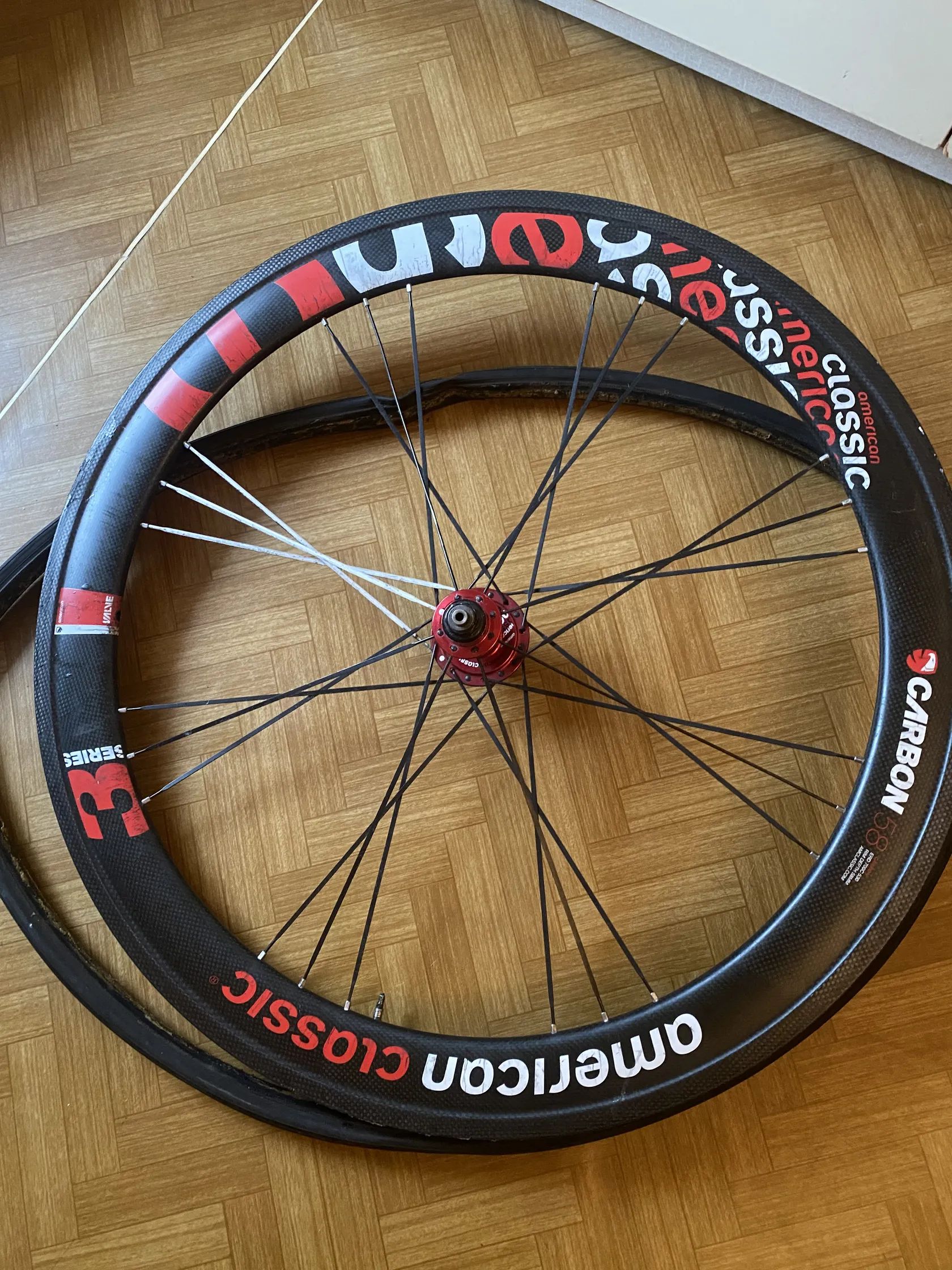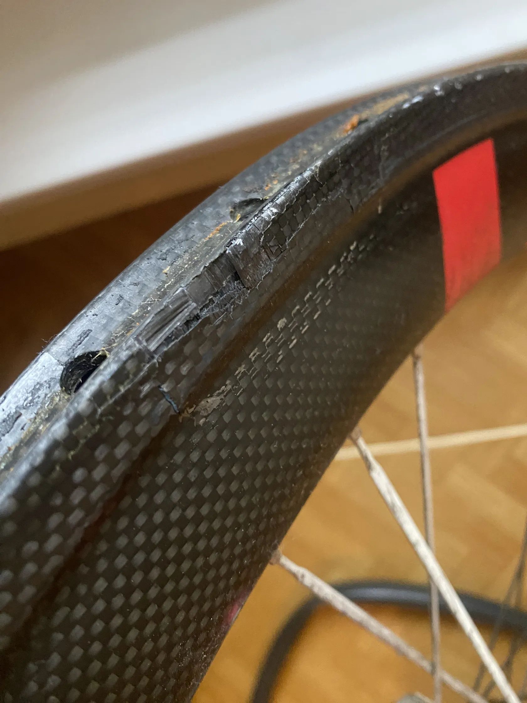 Prodám karbonová zapletená kola. Jedno má defekt viz foto. Mělo by jít opravit. Prodám za cenu jednoho. K oběma galuska.