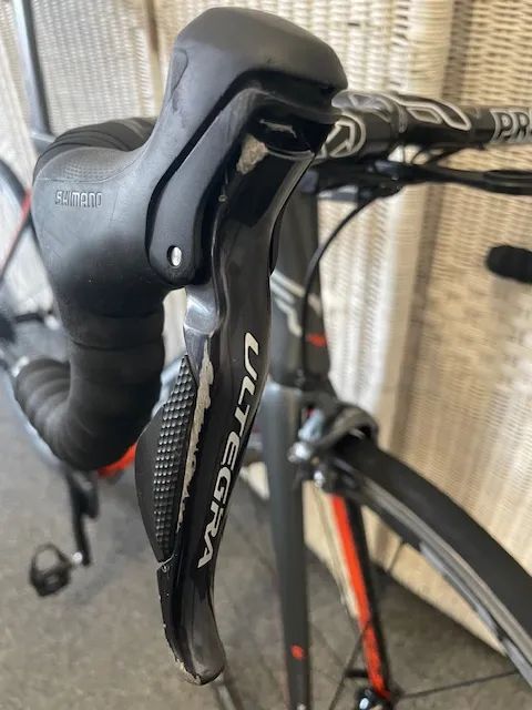 Prodám silniční carbonové aero kolo Felt AR2. Elektronické řazení Shimano Ultegra Di2. Čelisťové brzdy Shimano Ultegra, zadní uložená za středem. Kliky Shimano 105 50/34z. Výplet Shimano RS81. Řídítka PRO Combo 44cm, představec 12cm. Odřený měnič a pravá řadící páka. (vše plně funkční)